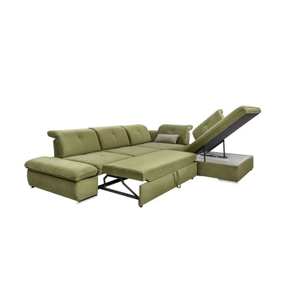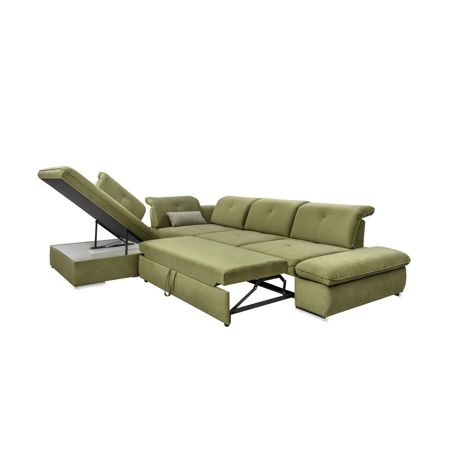 System rozkładania typu delfin umożliwia szybkie i łatwe przekształcenie narożnika w wygodne łóżko. Przechowywanie pościeli nie stanowi problemu dzięki dużemu pojemnikowi.
