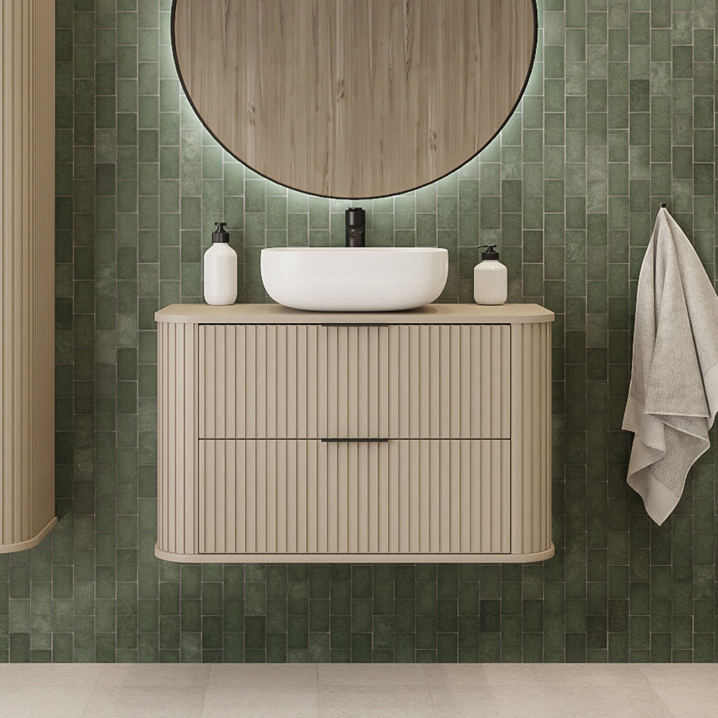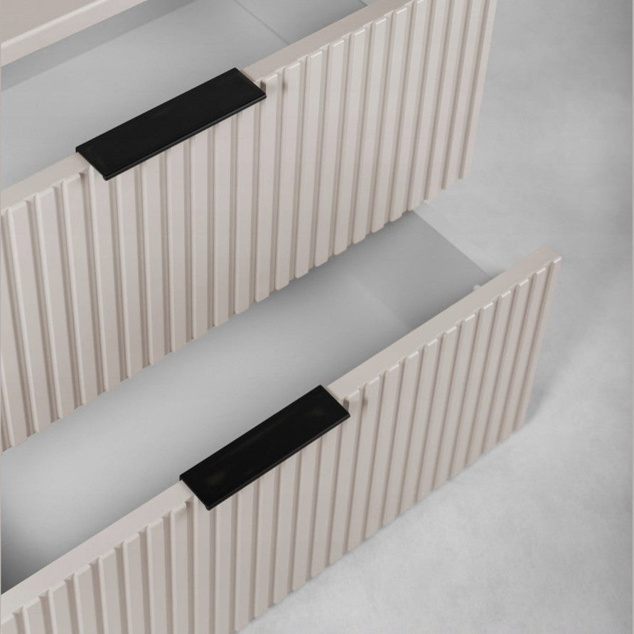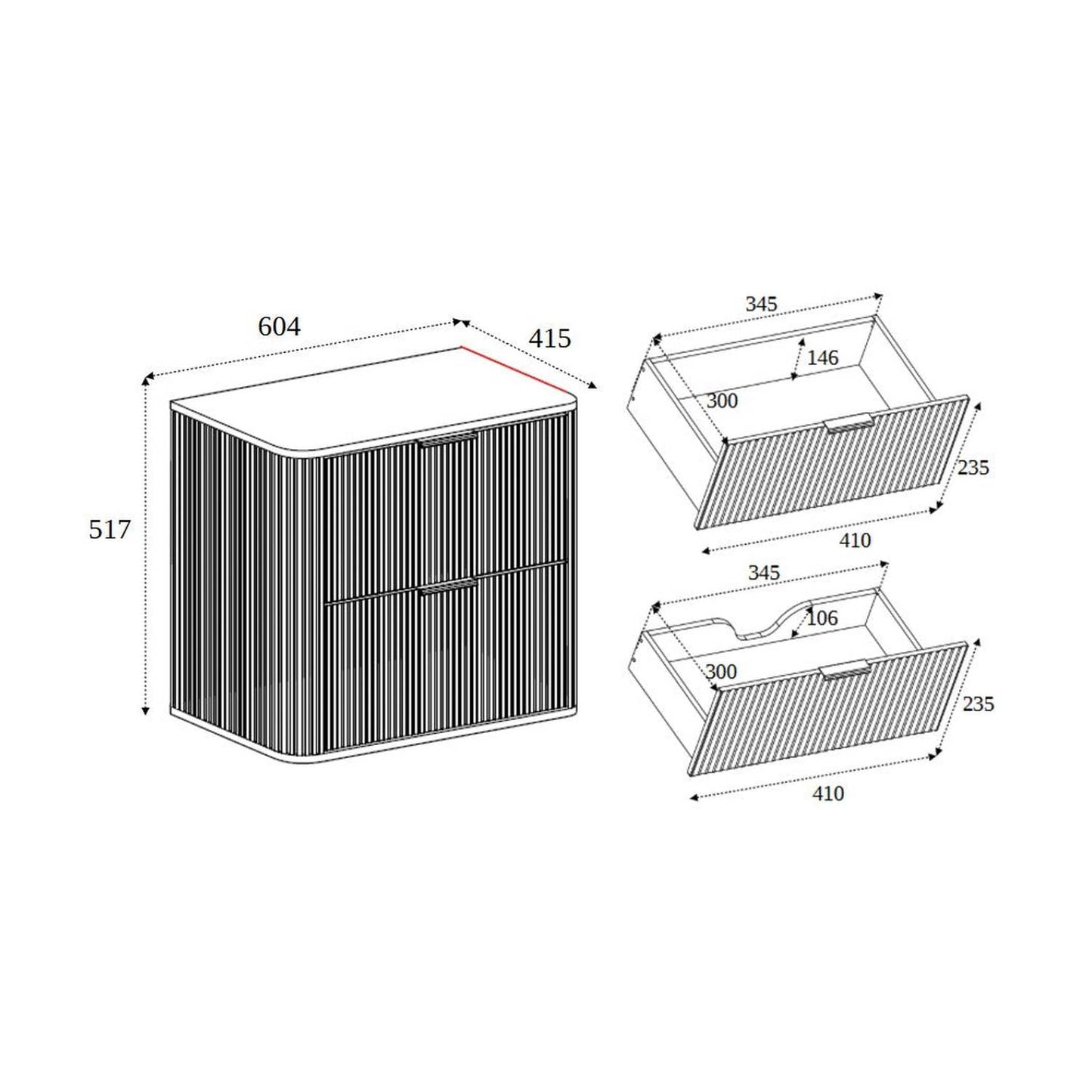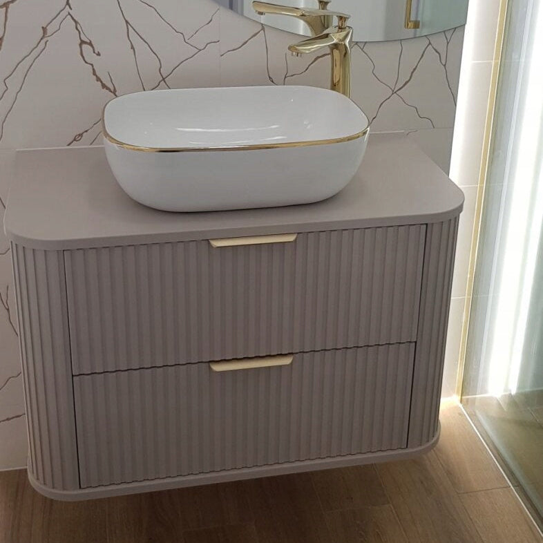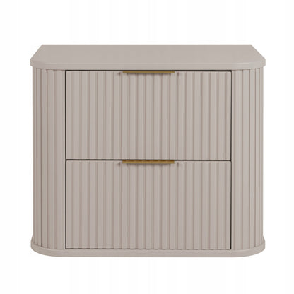 Transform your bathroom with the Elegance Glamour Style 2 Drawer Bathroom Wall Cabinet.. It's a 80cm wide cabinet with 2 spacious drawers designed with a curved finish and textured doors for a luxurious look. The included worktop completes the cabinet, providing a perfect blend of style and practicality and allows you to add a countertop basin. Upgrade your space with this elegant, functional solution that brings both glamour and smart storage to your bathroom.