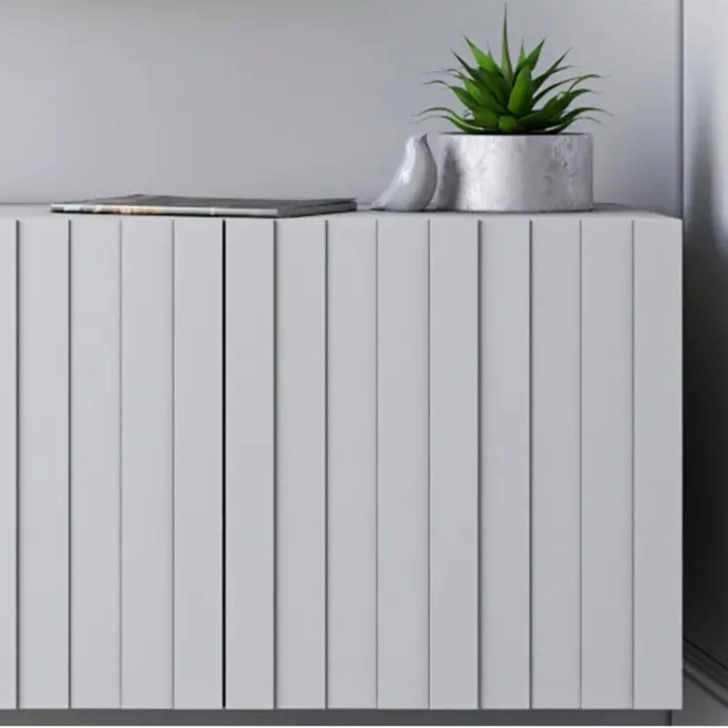 Fronty i korpus wykonano z bardzo wysokiej jakości materiału sprowadzanego z Włoch, który daje efekt głębokiego, matowego wykończenia. Powierzchnia przy dotyku jest delikatnie chropowata, bardziej zbliżona do naturalnego drewna, a nie sztucznej powłoki. Ryflowanie (trójwymiarowy efekt) nie jest nadrukiem, ale przetłoczeniem folii, co dodaje elegancji i głębi.