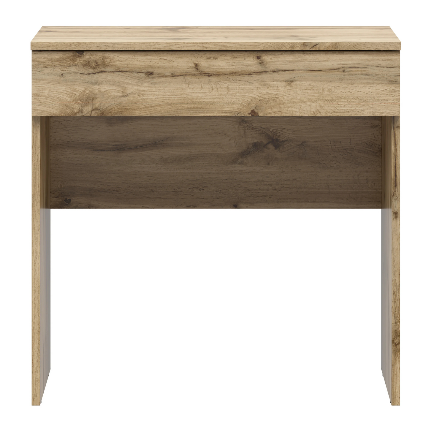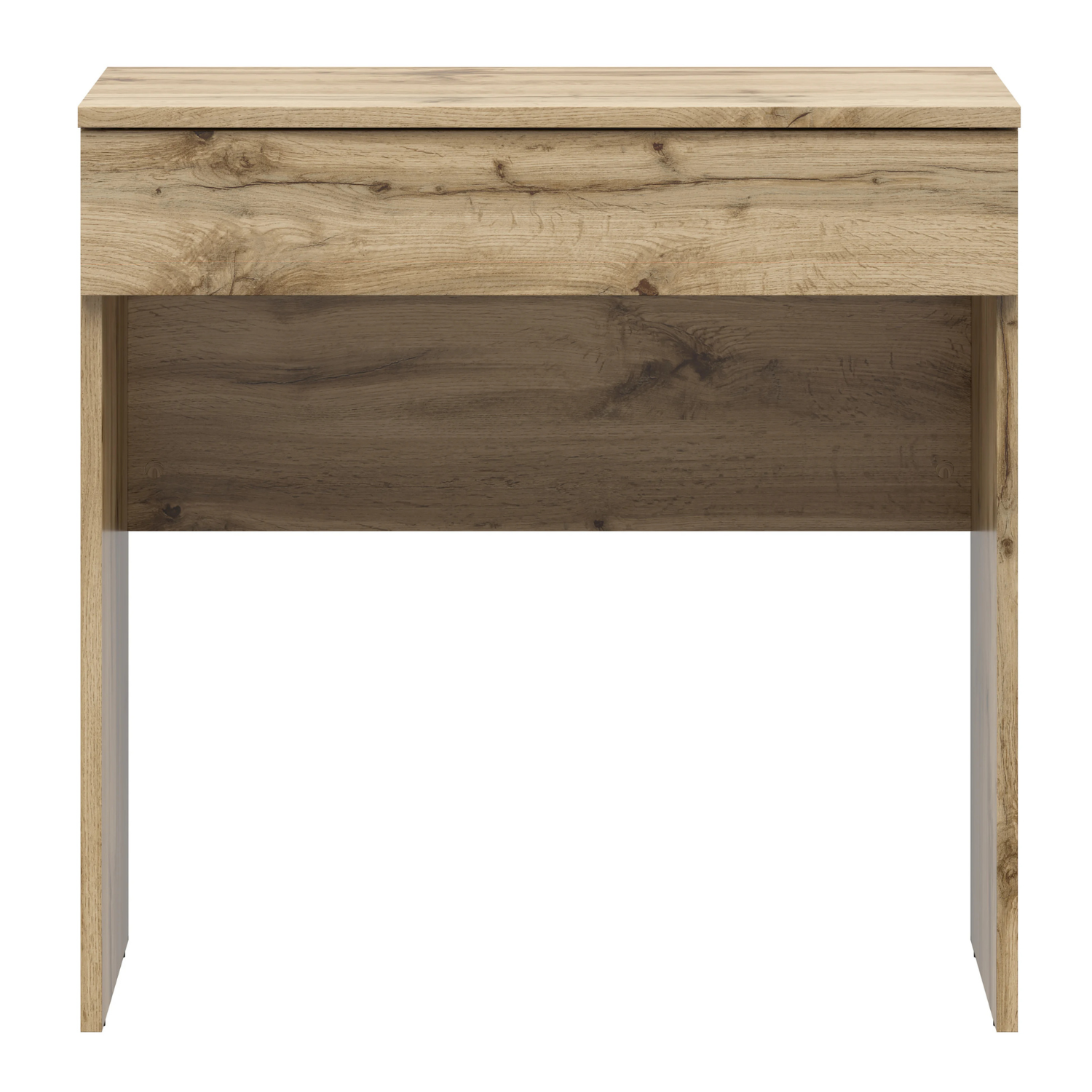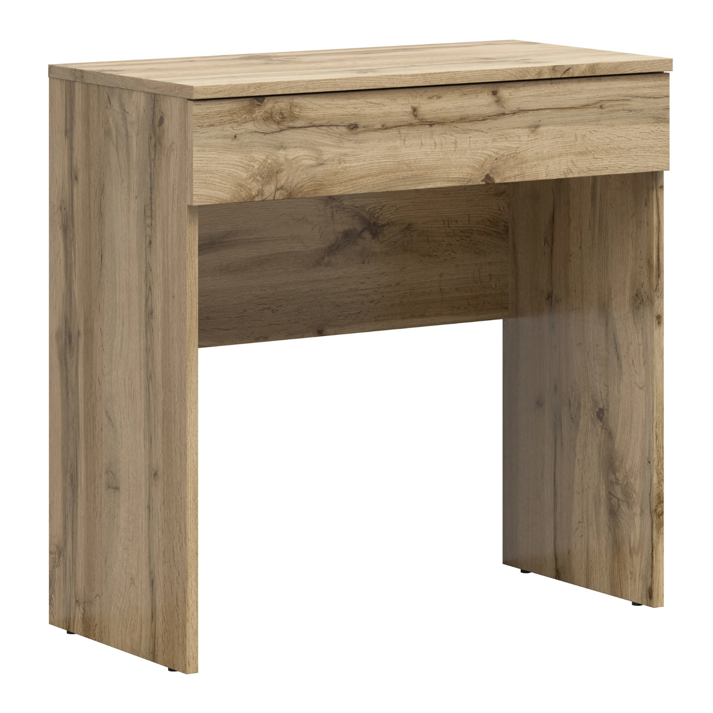 Toaletka Exter z szufladą to kompaktowy i funkcjonalny wybór dla osób poszukujących nowoczesnych rozwiązań do przechowywania w eleganckim wydaniu. Wyposażona w szeroką szufladę i praktyczny blat, oferuje dużo miejsca na codzienne niezbędniki, zachowując minimalistyczną estetykę. Wykonana z materiałów wysokiej jakości, zapewnia trwałość i wyrafinowany wygląd. Jako część nowoczesnej kolekcji, doskonale komponuje się w współczesnych wnętrzach, łącząc praktyczność ze stylem.
