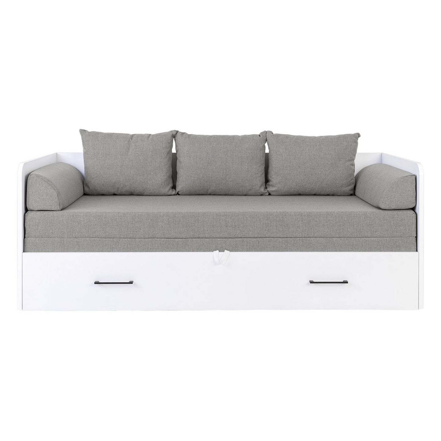 Exter Łóżko Składane z Pojemnikiem, Materacem i Poduszkami – Biały / Szary