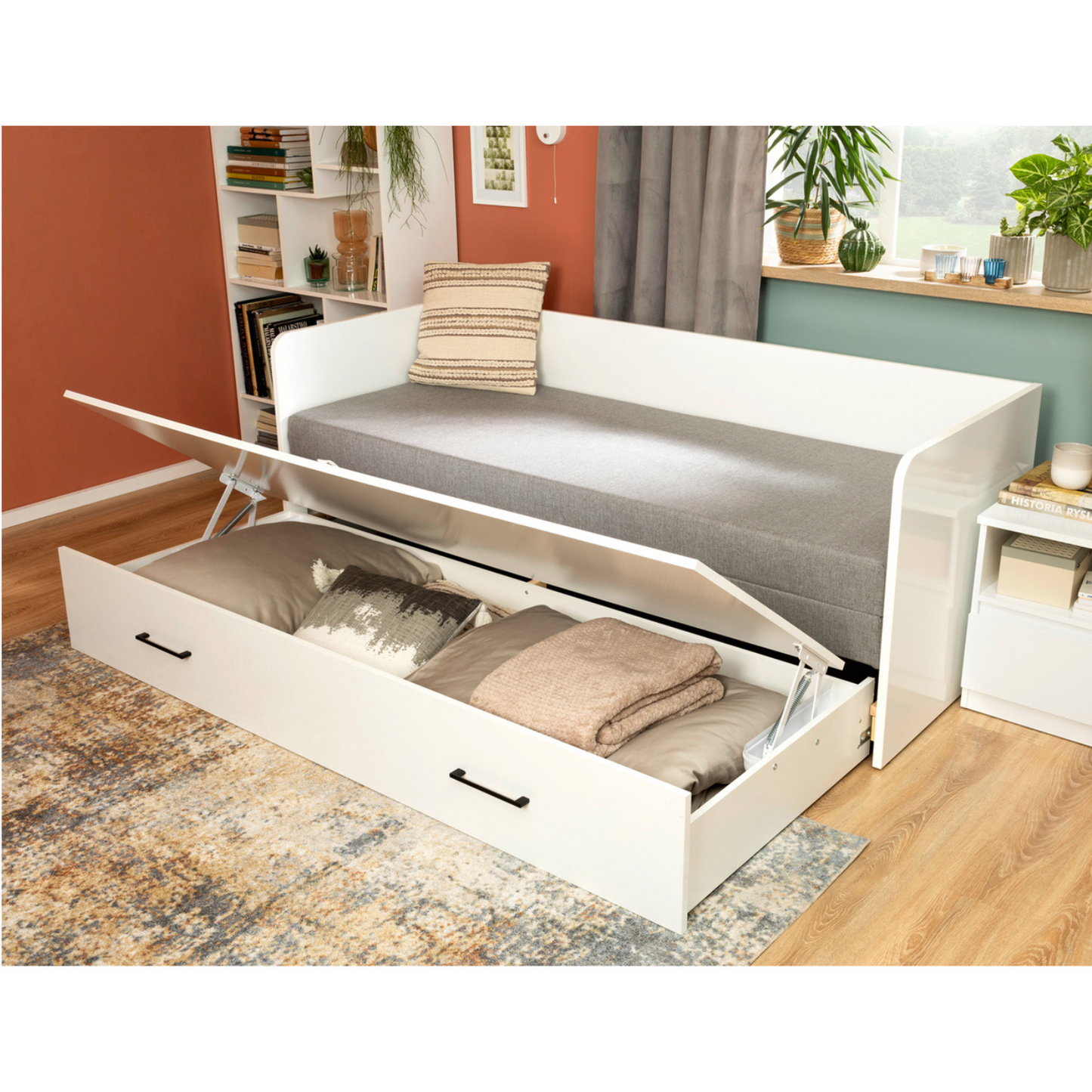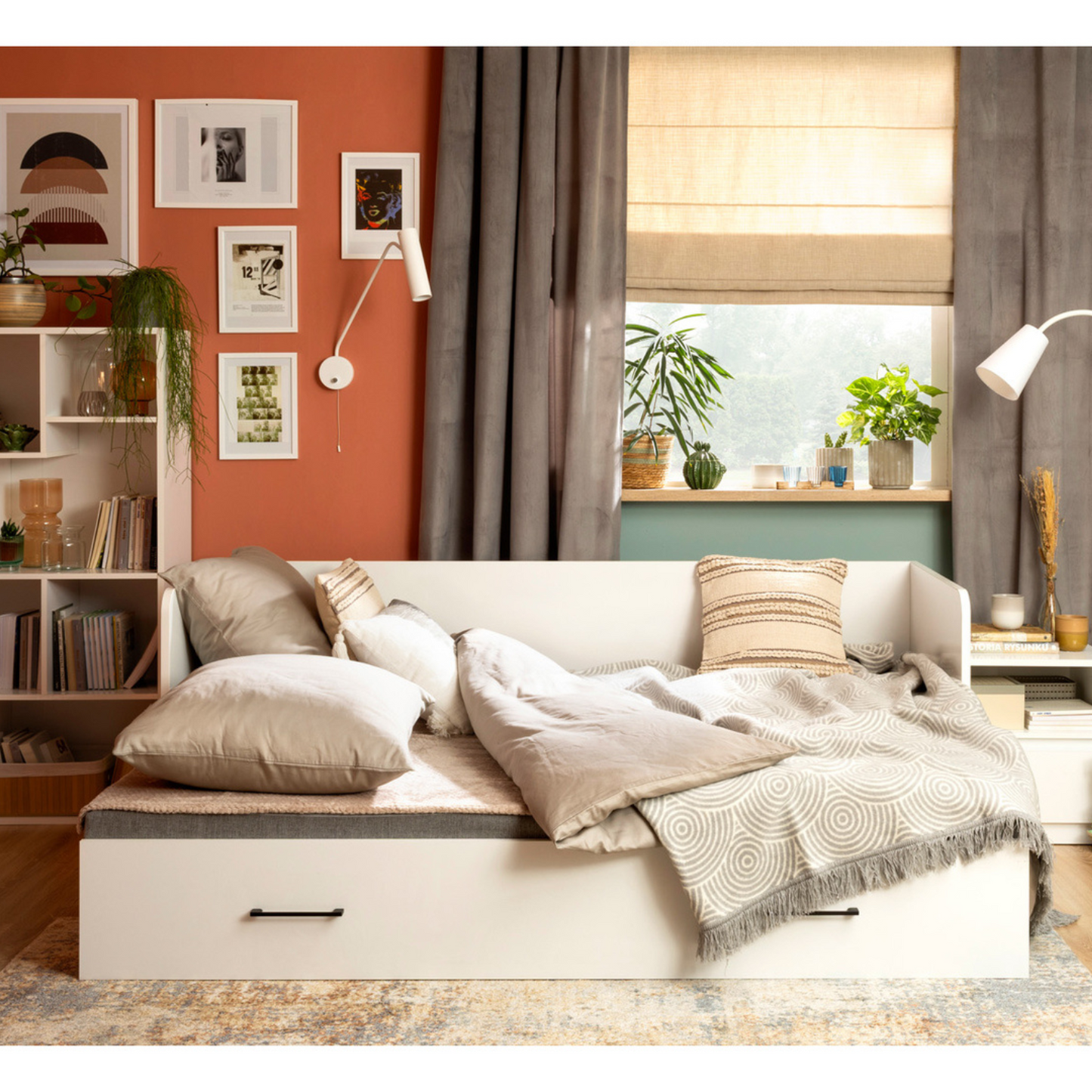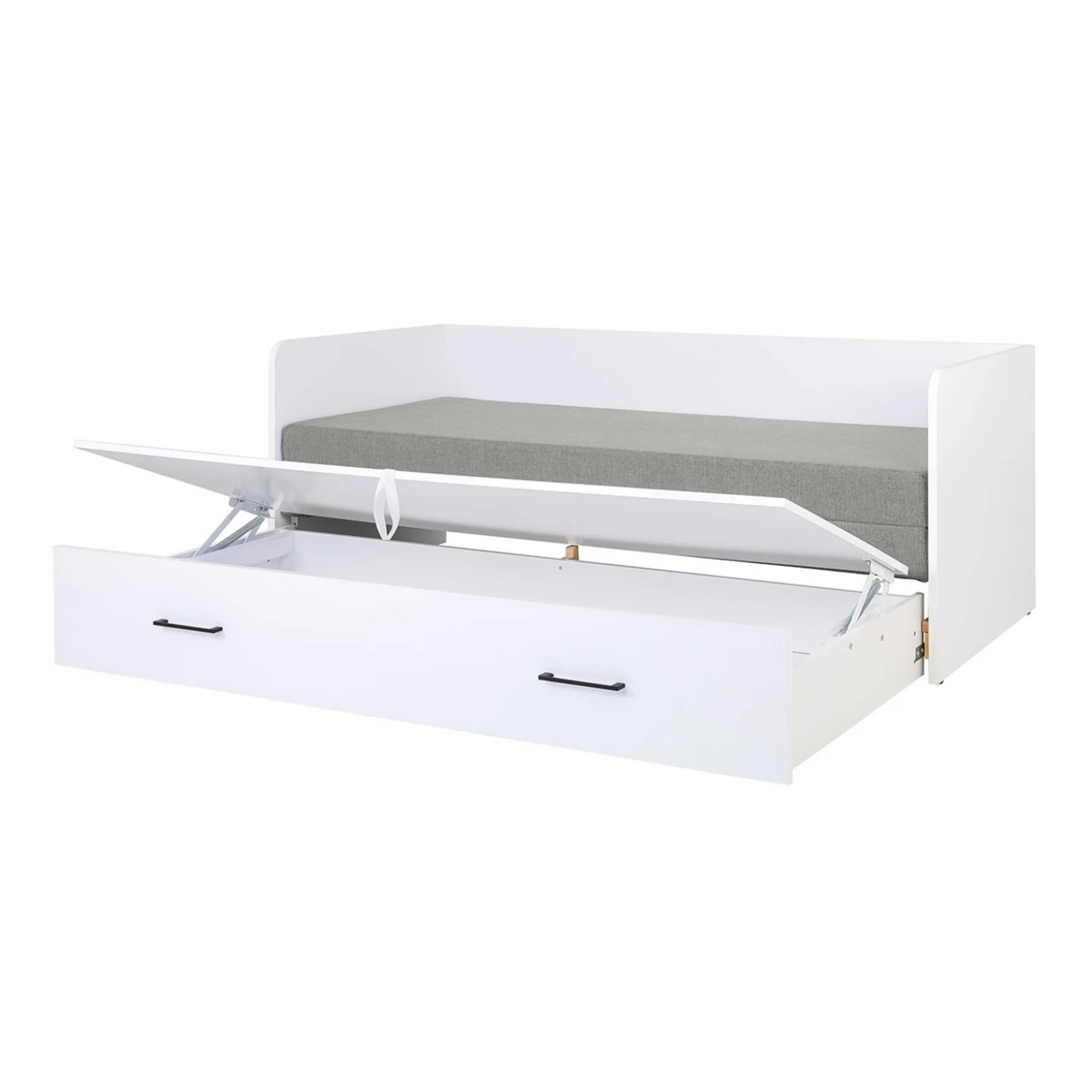 • Wbudowany schowek na pościel – wygodny pojemnik do organizacji pościeli i niezbędnych przedmiotów.
