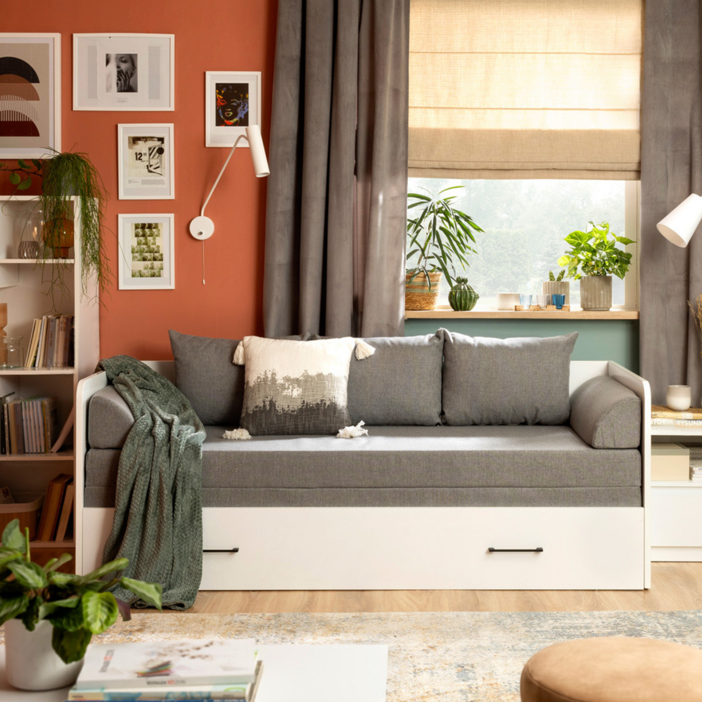 • Rozkładana powierzchnia do spania – łatwo przekształca się z pojedynczego łóżka w przestronne łóżko dwuosobowe.