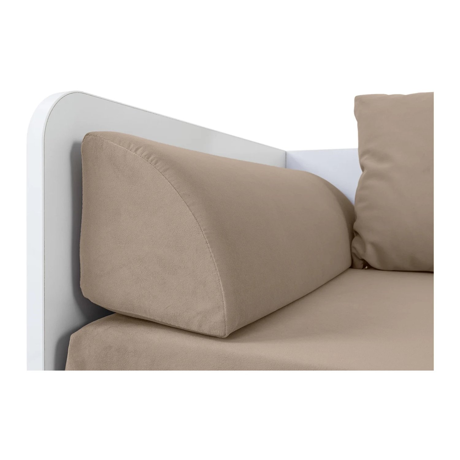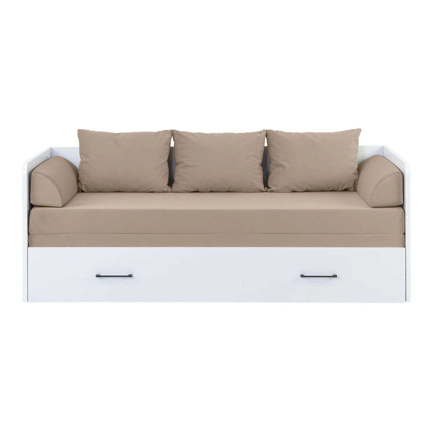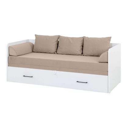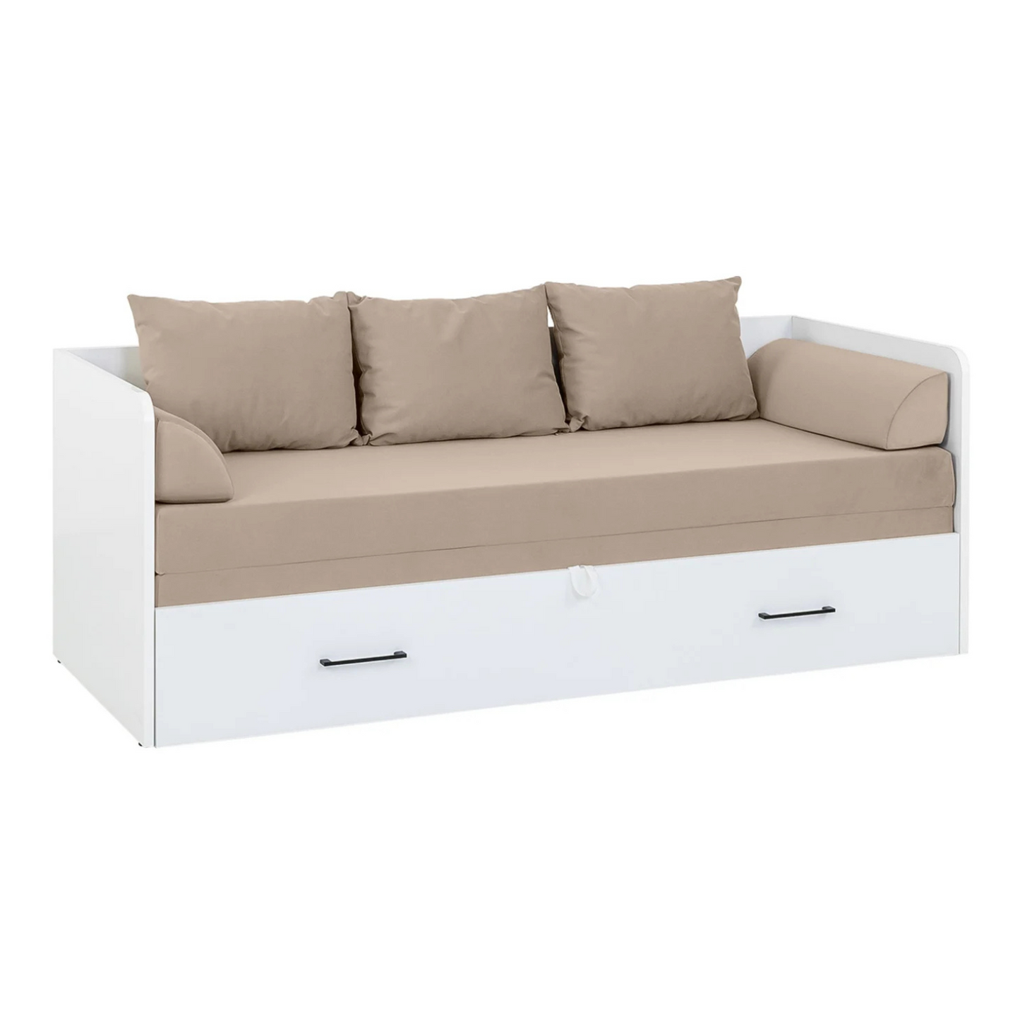 Exter Łóżko Składane z Pojemnikiem, Materacem i Poduszkami – Biały / Piaskowy