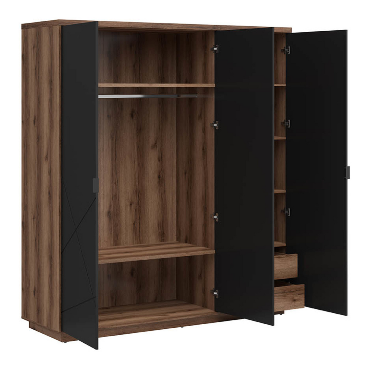Szafa Faisa 3-drzwiowa 180 cm oferuje przestronny i wszechstronny design, doskonały do łatwego organizowania swoich rzeczy. Wyposażona w dwa segmenty do uporządkowanego przechowywania, zapewnia porządek w pomieszczeniu. Funkcja cichego zamykania dodaje wygody, a trwała konstrukcja gwarantuje długotrwałą jakość. Frezowane fronty z MDF podkreślają nowoczesną estetykę, czyniąc ten mebel praktycznym, a jednocześnie stylowym dodatkiem do każdego wnętrza. Idealna dla osób szukających połączenia funkcjonalności z elegancją, łącząc efektywne przechowywanie z wyrafinowanym designem.