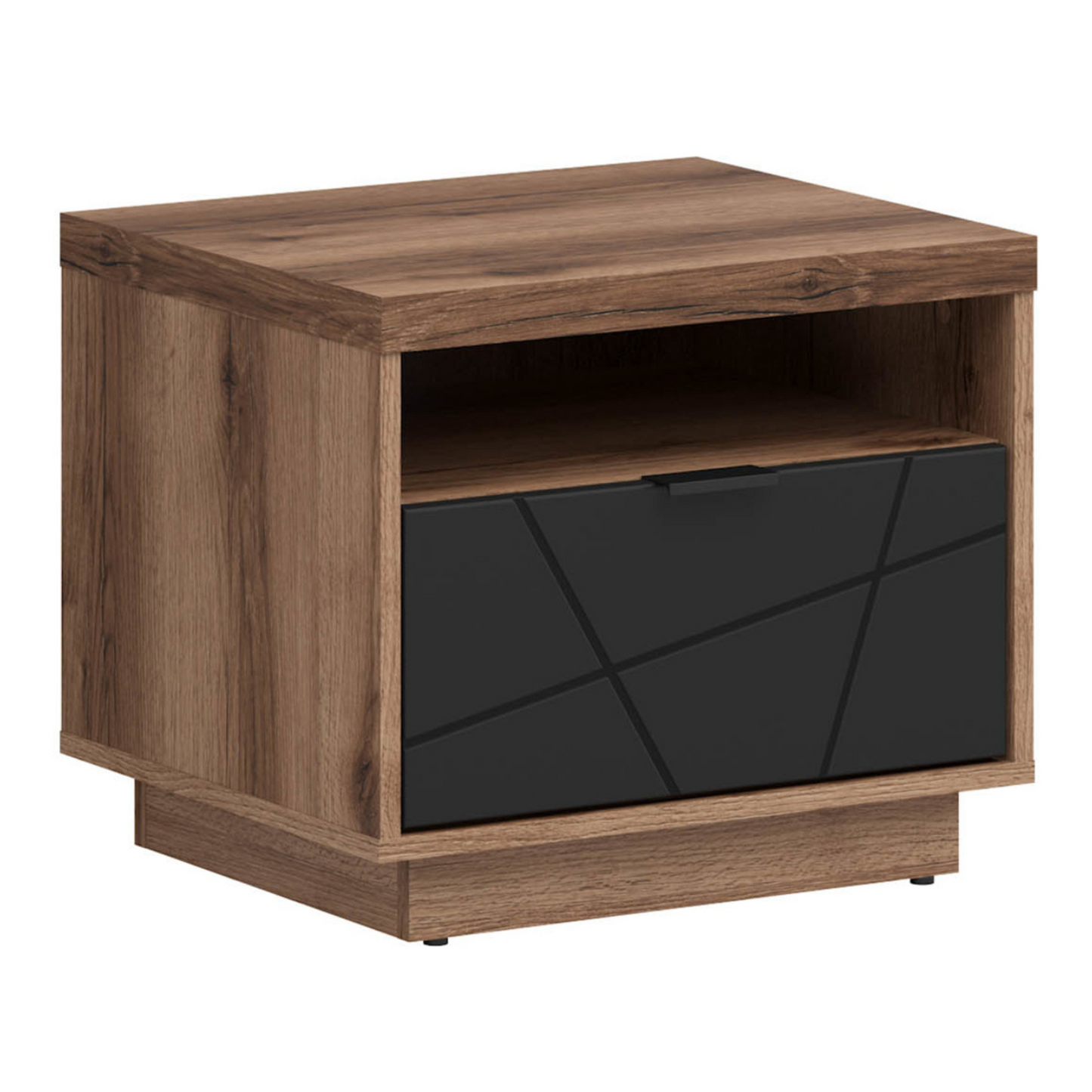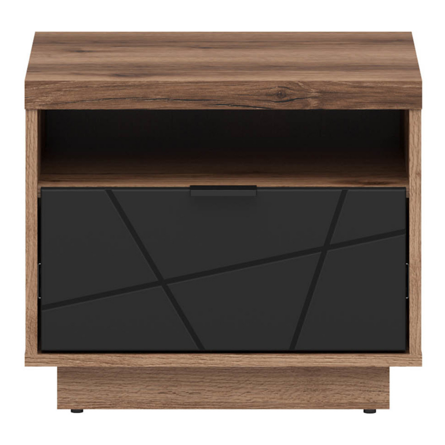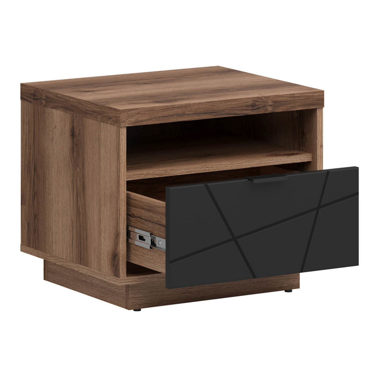 Szafka nocna Faisa 50 cm z szufladą to stylowy i funkcjonalny wybór dla osób poszukujących nowoczesnej elegancji w swojej sypialni. Wyposażona w szufladę z funkcją cichego zamykania i grubszy blat, zapewnia wygodę i trwałość. Eleganckie frezowane wzory na froncie dodają wyrafinowanego charakteru, czyniąc ją doskonałym rozwiązaniem do nowoczesnych wnętrz. Idealna dla osób, które cenią połączenie praktyczności z wyrafinowaną estetyką w swojej przestrzeni życiowej.