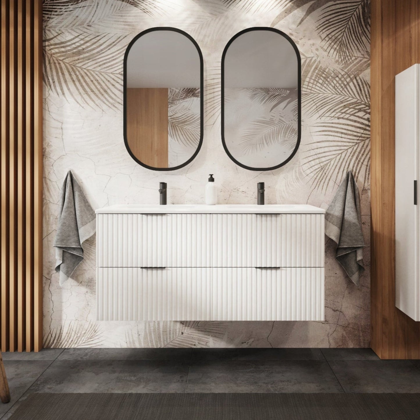The FLOW collection is designed for use in bathrooms exposed to moisture. The materials used in production, such as laminated MDF and ABS, are moisture-resistant, making these pieces suitable for the humid conditions found in bathrooms.
