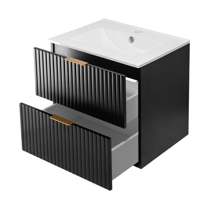 Our vanity cabinet comes equipped with a sleek, small ceramic rectangular sink that combines beauty with practicality, providing an ideal solution for your bathroom needs. Its size makes it a versatile addition, fitting seamlessly into both small and larger bathrooms.