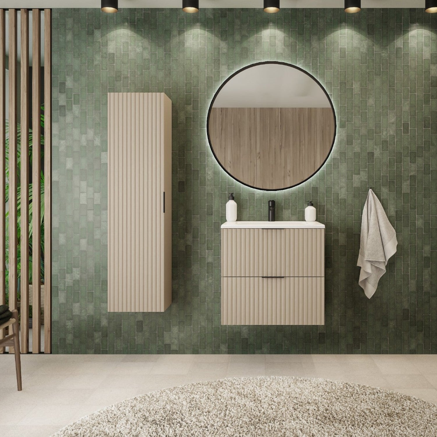 Flow 2 Drawer Bathroom Vanity Cabinet 60cm with Worktop - Cashmere