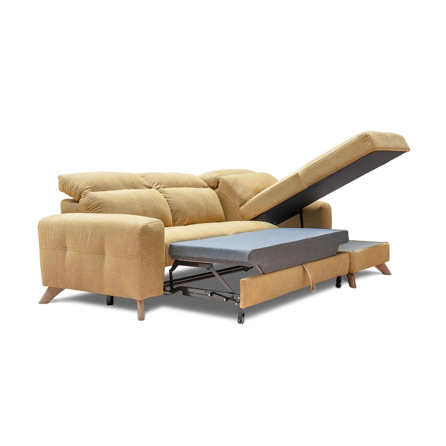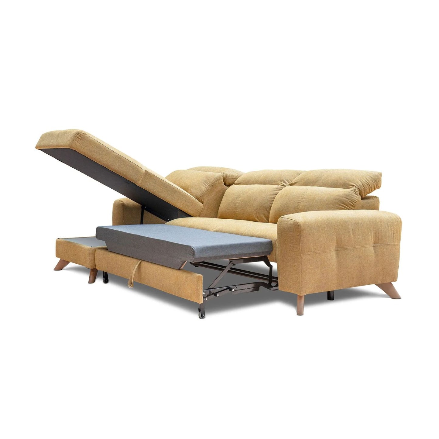 Pod jednym z siedzisk znajduje się również pojemny schowek na pościel, co jest szczególnie praktyczne, gdy liczy się każdy centymetr przestrzeni.