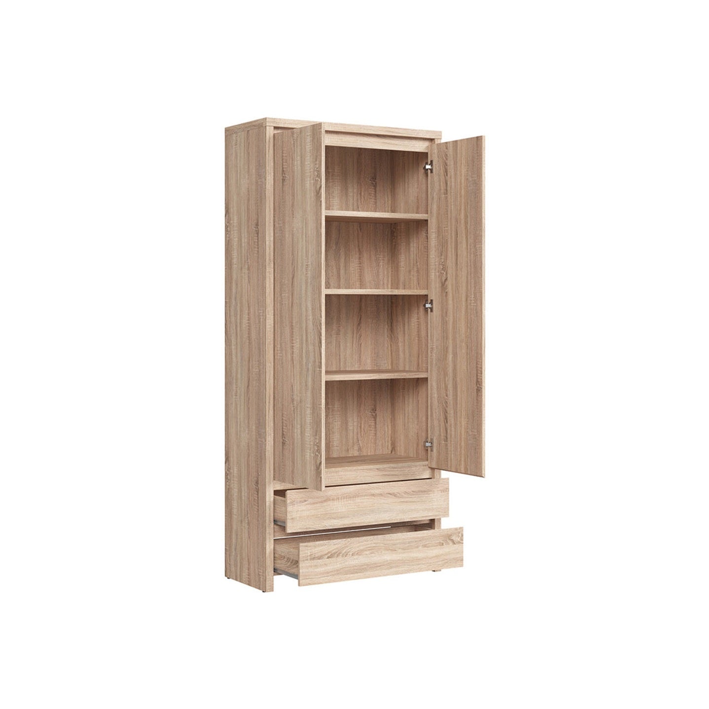Regał zamknięty Kaspian REG/2D2S to stylowy i funkcjonalny mebel do każdego domu lub biura. Posiada dwie zamknięte szafki, dwie szuflady oraz przestronne półki do przechowywania książek, dekoracji lub mediów. Wykonany z wysokiej jakości materiałów, zapewnia trwałość i długotrwałe użytkowanie. Nowoczesny design z prostymi liniami pasuje do różnych stylów wnętrz.