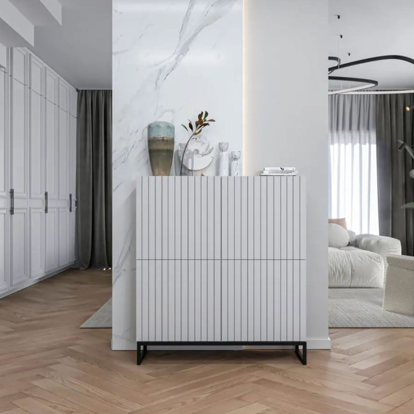 Wykonana w Polsce z wysokiej jakości materiałów, komoda ELPIS łączy nowoczesną estetykę z trwałością. Dostępna w czterech eleganckich, matowych kolorach, doskonale pasuje zarówno do wnętrz glamour, jak i nowoczesnych aranżacji.