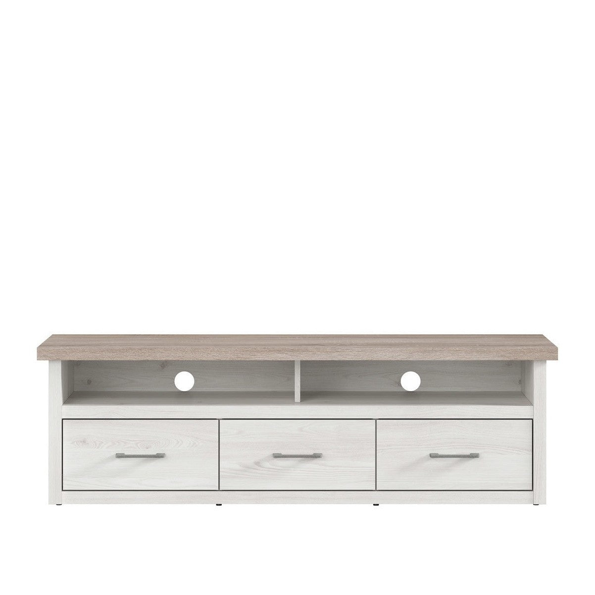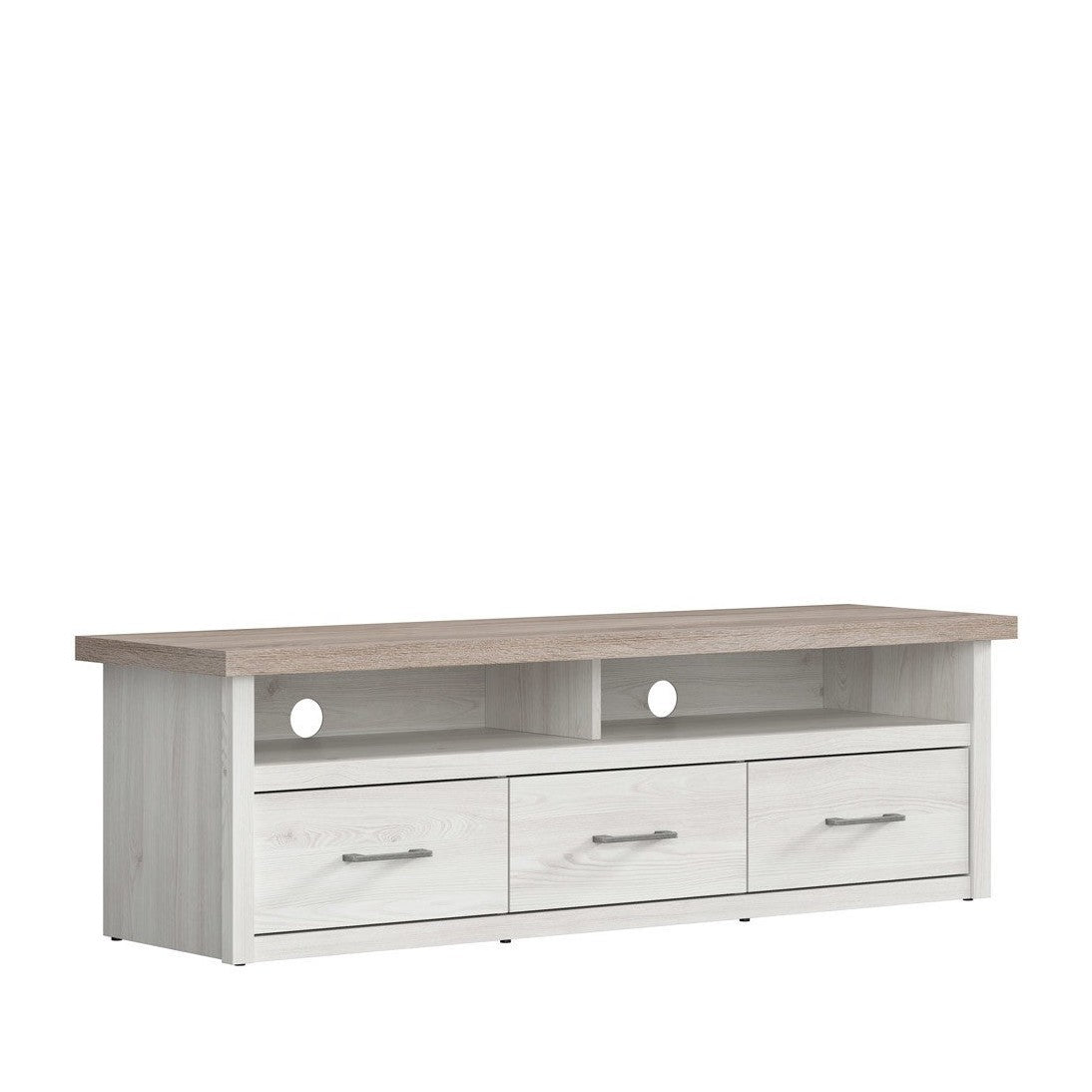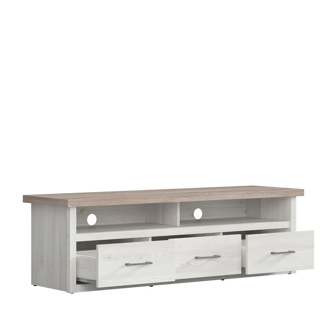 Szafka RTV Luca Juzi to doskonały element Twojego salonu. Długi blat umożliwia ustawienie telewizora, a dwie półki pomieszczą pozostały sprzęt RTV. Trzy kompaktowe szuflady pozwalają na przechowywanie płyt CD, DVD oraz drobiazgów. Dzięki dwóm otworom wentylacyjnym sprzęt elektroniczny będzie miał odpowiednią cyrkulację powietrza, a kable zostaną estetycznie ukryte.