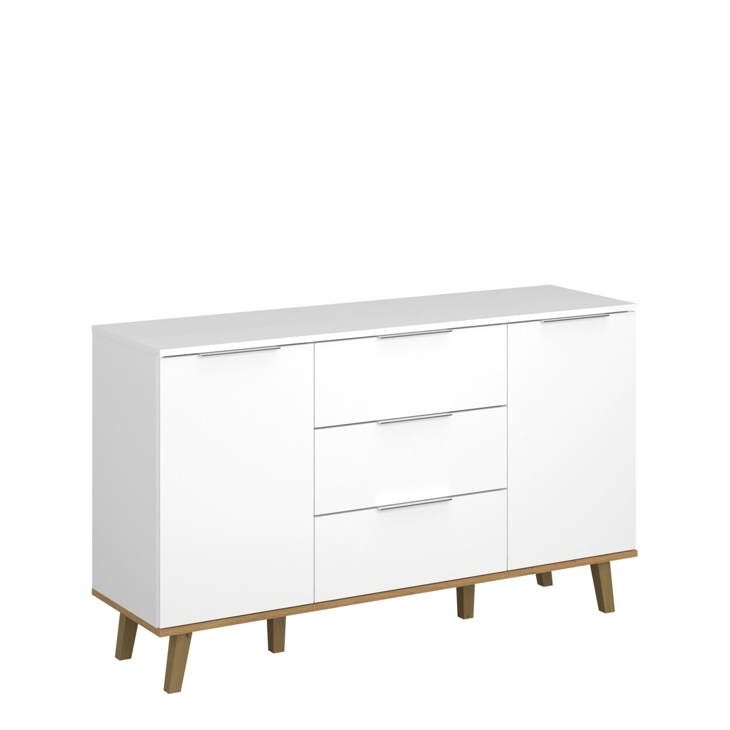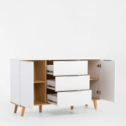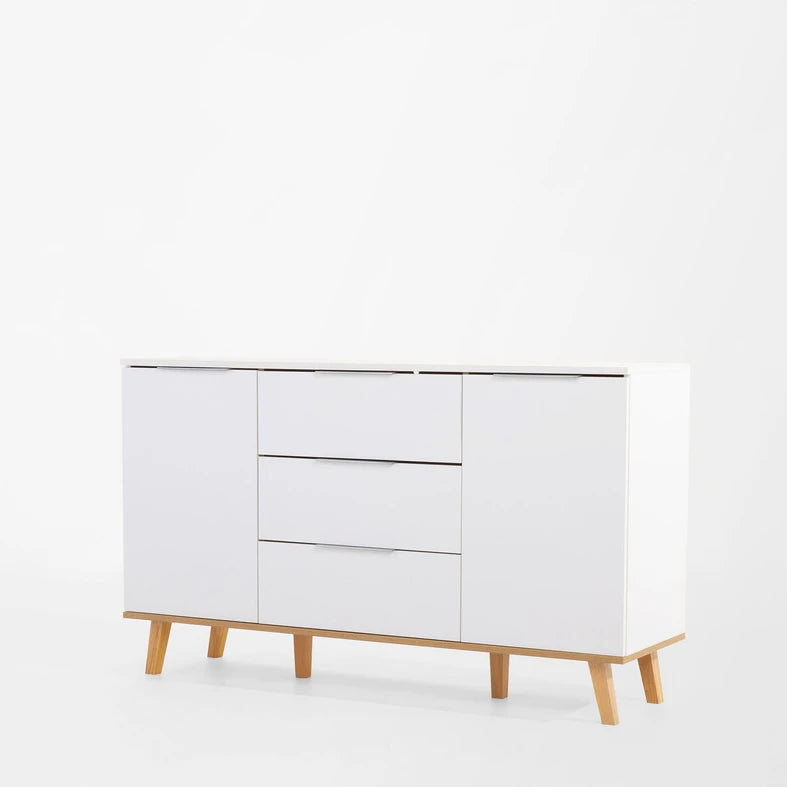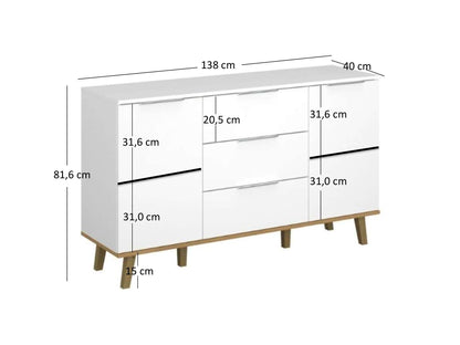 Komoda NEPTUN 2D/3S została zaprojektowana z myślą o domowych biurach lub pokojach młodzieżowych, zapewniając odpowiednią organizację przestrzeni do pracy i nauki. Oferuje dużo miejsca do przechowywania dokumentów, artykułów biurowych, ubrań i przedmiotów codziennego użytku. Komoda posiada 3 szuflady z prowadnicami kulkowymi o pełnym wysuwie oraz 4 zamknięte wnęki. Na blacie można umieścić ulubione dekoracje, gadżety lub roślinę doniczkową.