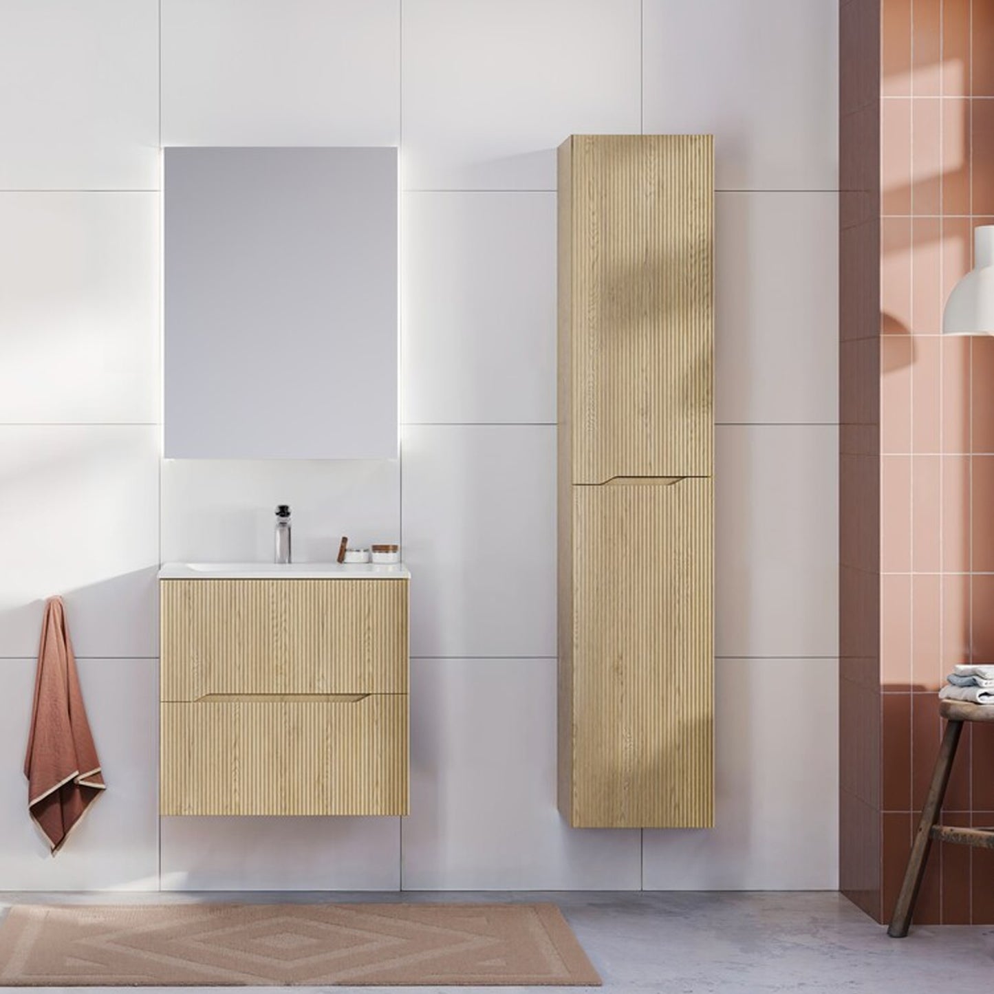 Stwórz spokojną, naturalną atmosferę w swojej łazience dzięki zestawowi łazienkowemu Nordic 60 cm z 2 szufladami, umywalką i słupkiem. Inspirowany skandynawskim designem, zestaw ten łączy czyste linie, naturalne faktury i przemyślane rozwiązania do przechowywania, które podnoszą estetykę i funkcjonalność łazienki.