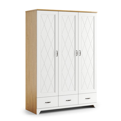 Szafa Provenza z trzema drzwiami to połączenie funkcjonalności i stylu. Wykończenie w dębie kamiennym i matowej bieli zapewnia elegancki wygląd, a kompaktowa forma oferuje wystarczająco dużo miejsca do przechowywania w mniejszych przestrzeniach, nie rezygnując z designu.