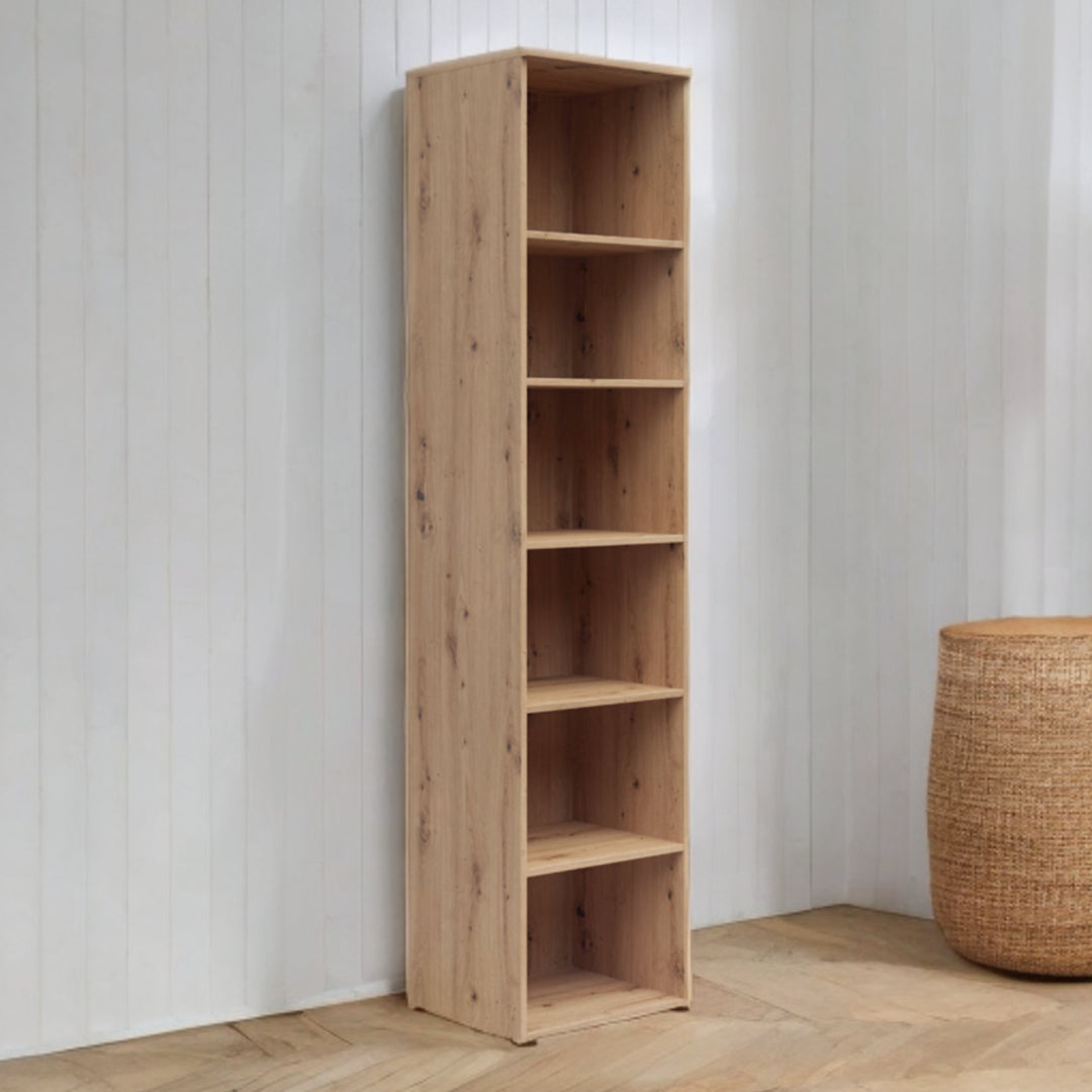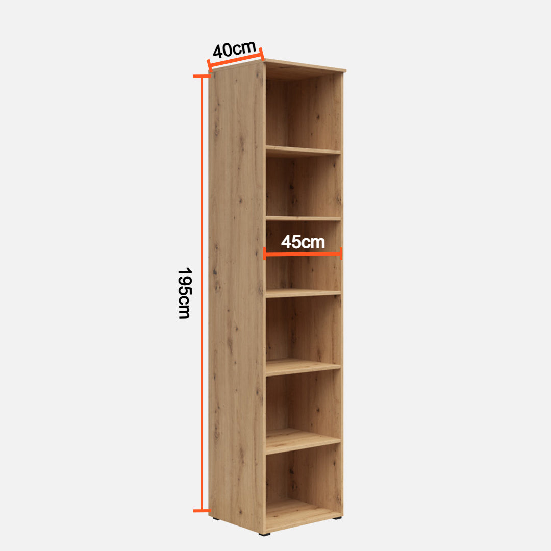 Ten nowoczesny regał o wymiarach 195 cm x 40 cm x 45 cm w kolorze dąb artisan idealnie nadaje się do przechowywania książek, dokumentów, albumów ze zdjęciami oraz innych przedmiotów, które chcesz mieć pod ręką.
