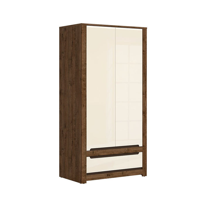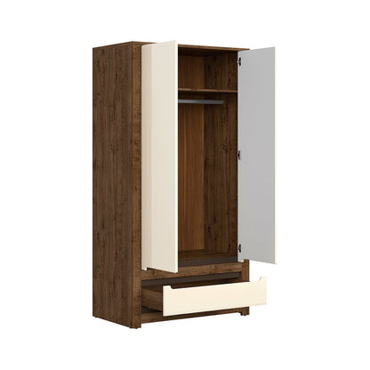 Szafa Ruso to pojemny mebel, który pomoże w organizacji ubrań i dodatków. Wyposażona w górną półkę, drążek na wieszaki oraz pojemną szufladę w dolnej części, zapewnia miejsce na odzież oraz drobiazgi.