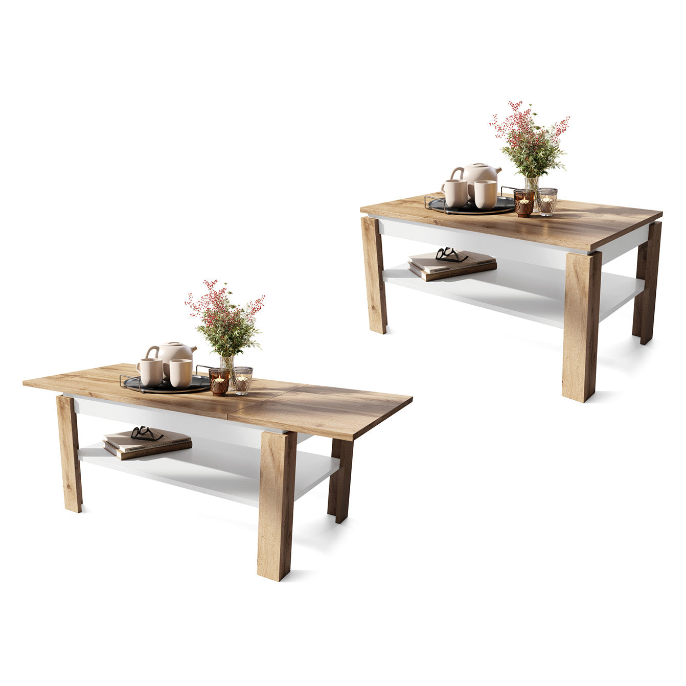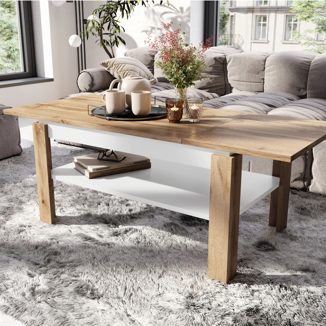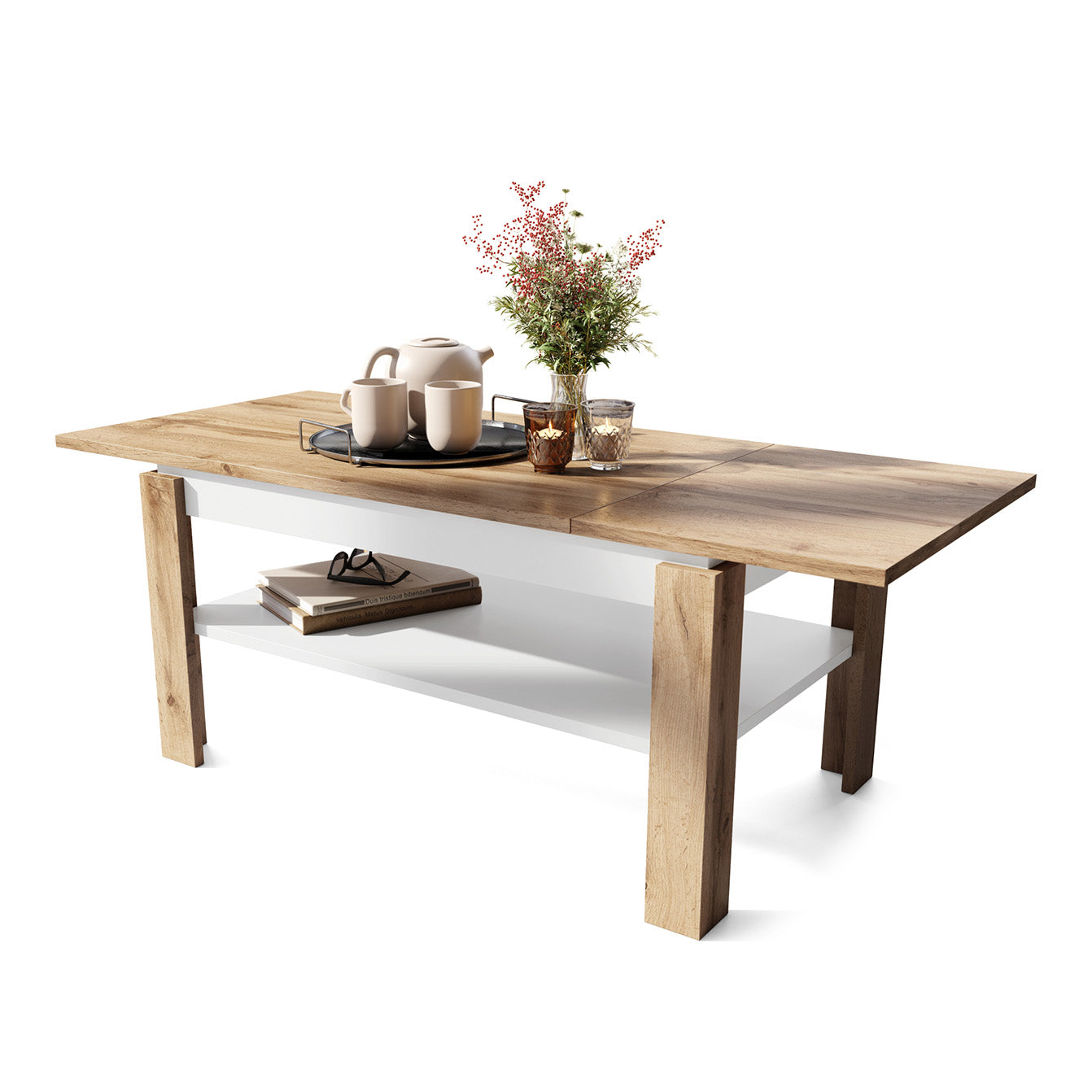 A refreshed version of a timeless classic, this coffee table is a perfect addition to any living room. The top can be quickly extended to 140 cm, making it easy to accommodate unexpected guests. A spacious lower shelf keeps your essentials within reach, combining style with everyday functionality.