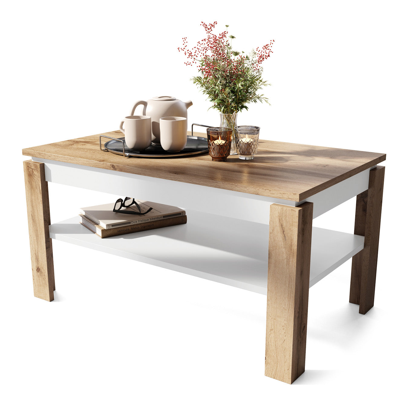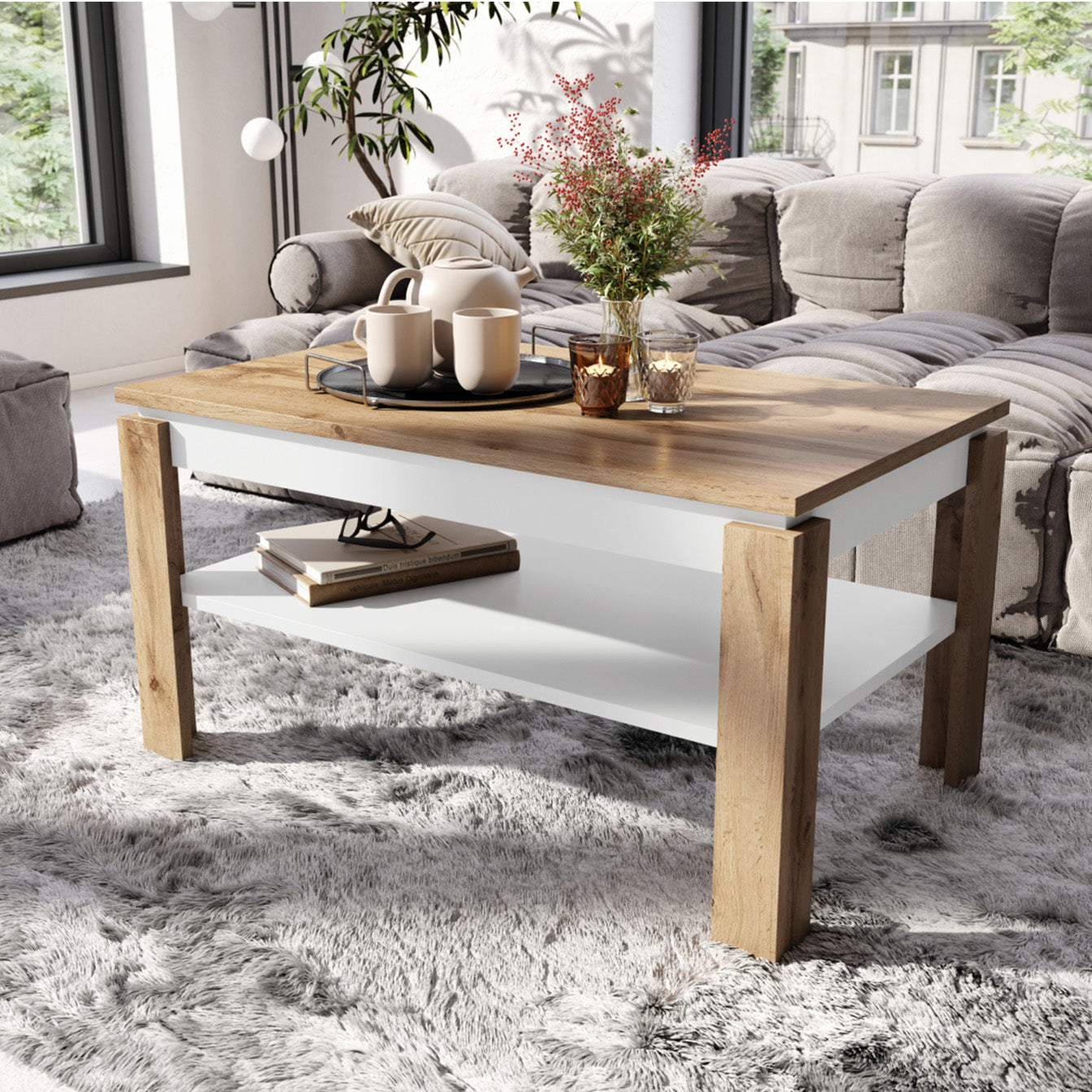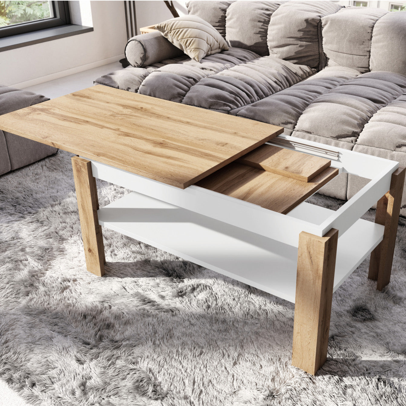 A refreshed version of a timeless classic, this coffee table is a perfect addition to any living room. The top can be quickly extended to 140 cm, making it easy to accommodate unexpected guests. A spacious lower shelf keeps your essentials within reach, combining style with everyday functionality.