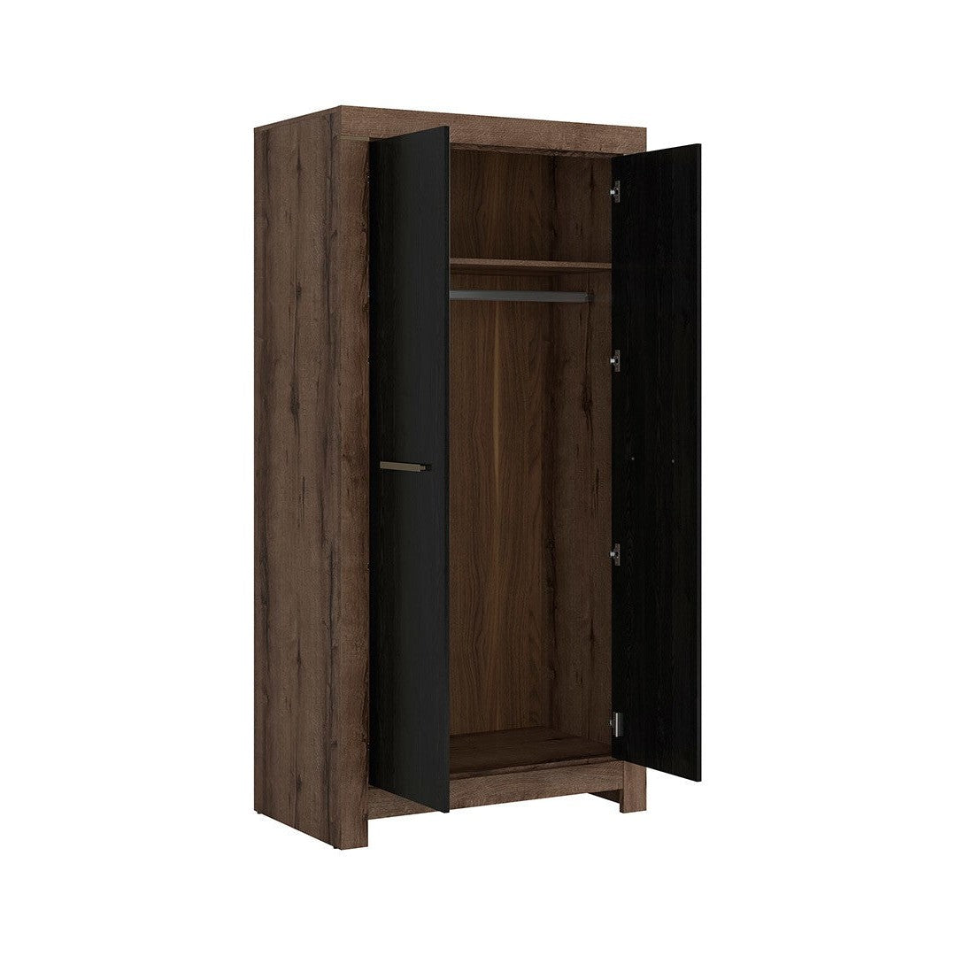 The Balin two-door wardrobe is a perfect solution for storing evening gowns and outerwear. It features a practical top shelf for warm sweaters and jeans and a hanging rod for dresses and coats. The thickened sides frame the smooth, subtle fronts beautifully. Soft-close hinges ensure quiet and convenient use by gently slowing the doors before closing.