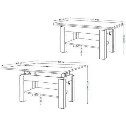 • Width: 130cm, Depth: 65-130cm, Height: 60-72cm