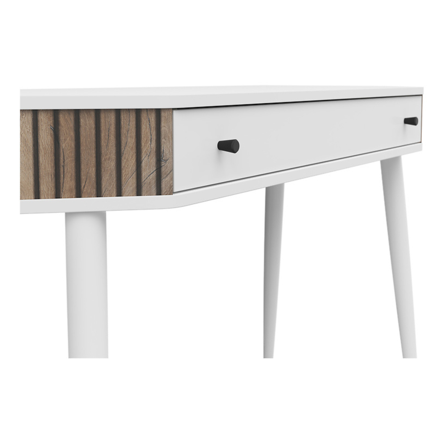 Cali Dressing Table 120cm with Drawer is an elegant and functional choice for those seeking a timeless design with modern versatility. Featuring a spacious main drawer, it provides practical storage while maintaining a sleek appearance. The elegant color combination and slender wooden legs add a refined touch to any space. This table is ideal for individuals who value the blend of aesthetic charm and everyday functionality, making it a stylish and useful addition to various living areas.