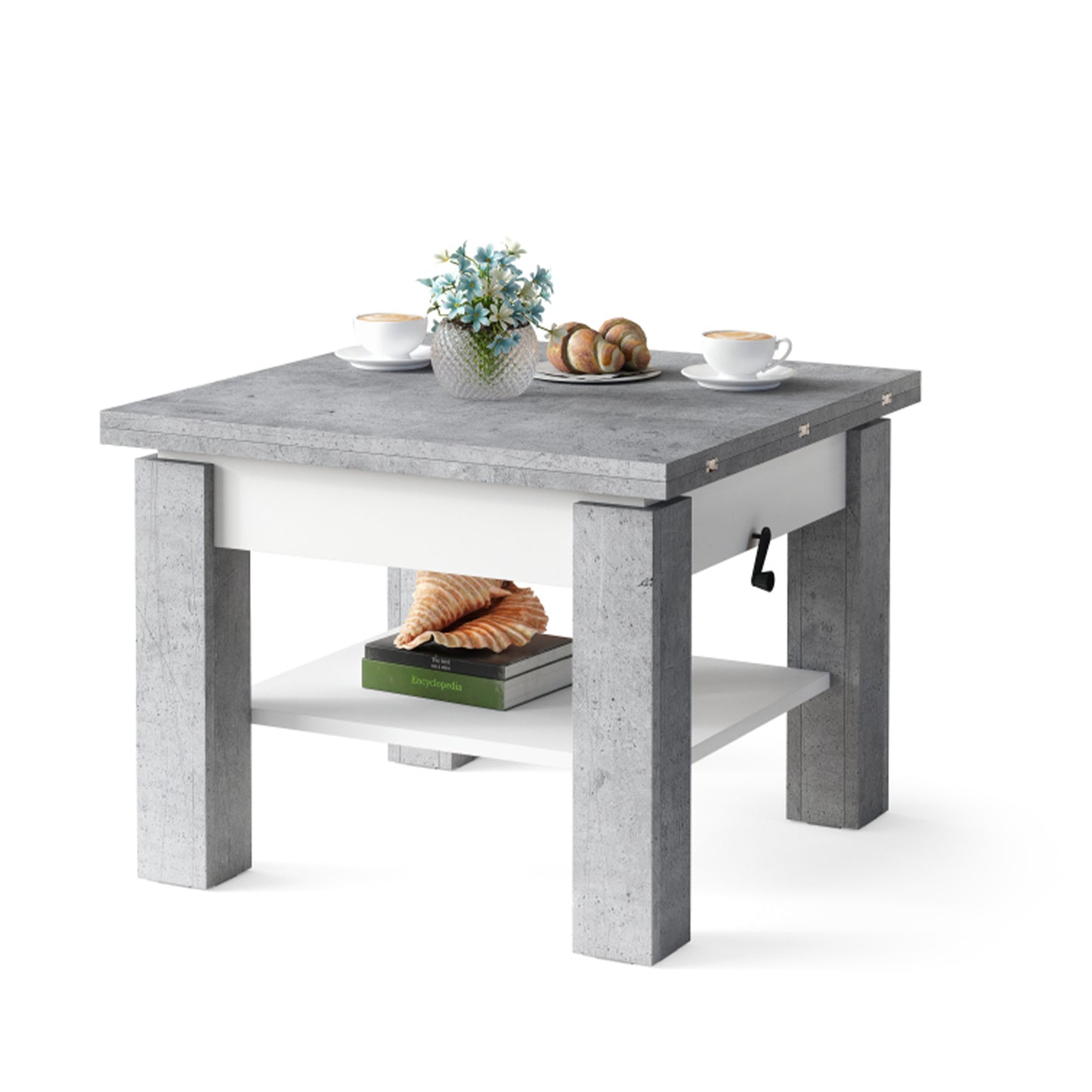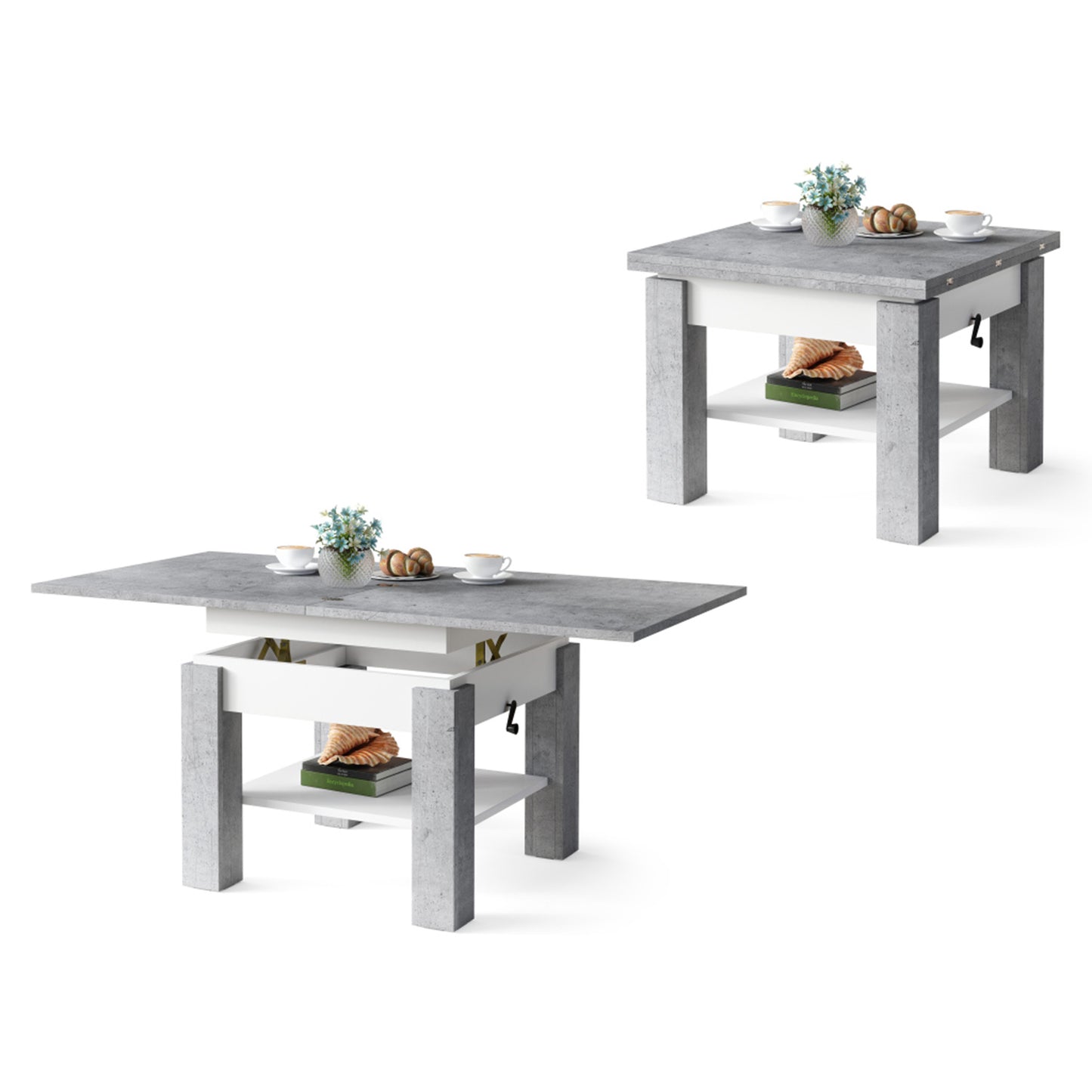Clara 2 in 1 Extending Coffee / Dining Table 75-150cm - Concrete / White