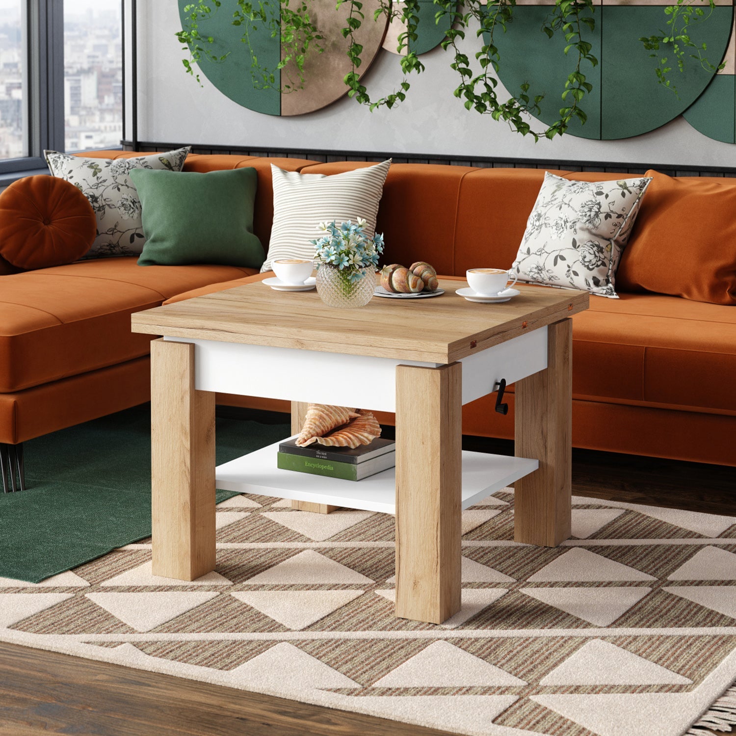 The Extending coffee table Clara is a versatile and stylish addition to any living space. Crafted with exquisite attention to detail, this coffee table seamlessly combines functionality with modern design. Its sleek, minimalist silhouette enhances the aesthetic appeal of your home while providing ample storage and surface space. Constructed from high-quality materials, this coffee table is built to last. Its sturdy frame and durable finish make it resistant to everyday wear and tear, ensuring long-lasting performance. The Clara coffee table is designed to withstand the demands of daily use, making it an ideal investment for your home.