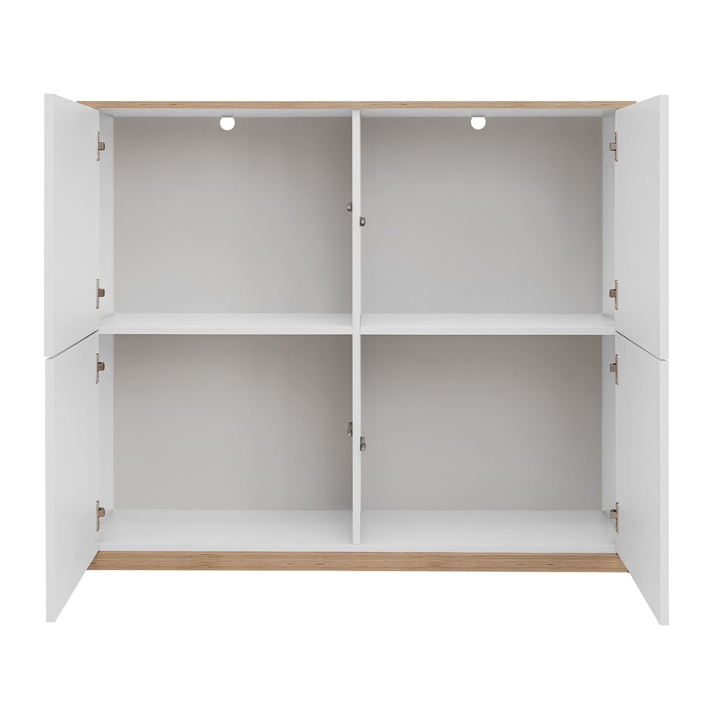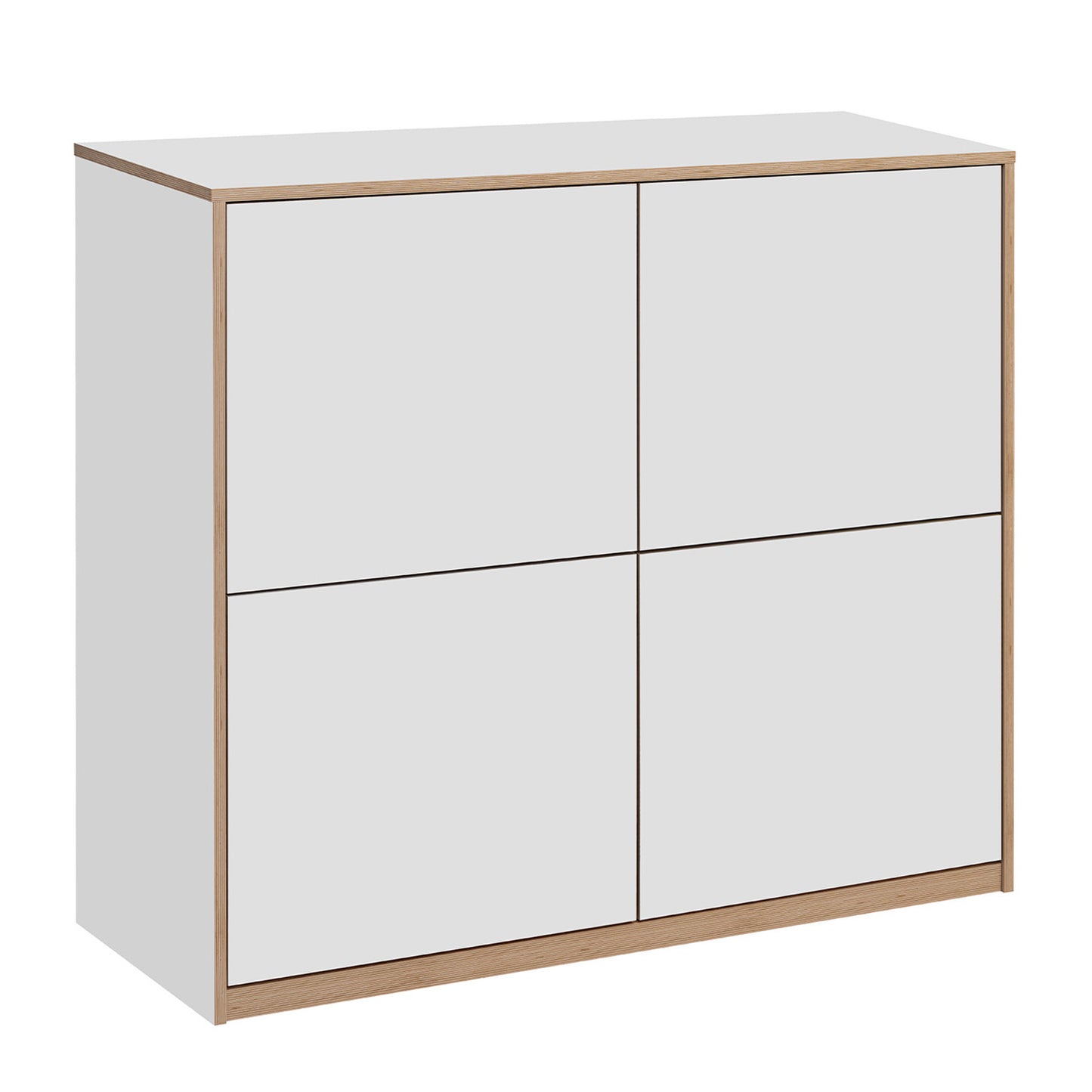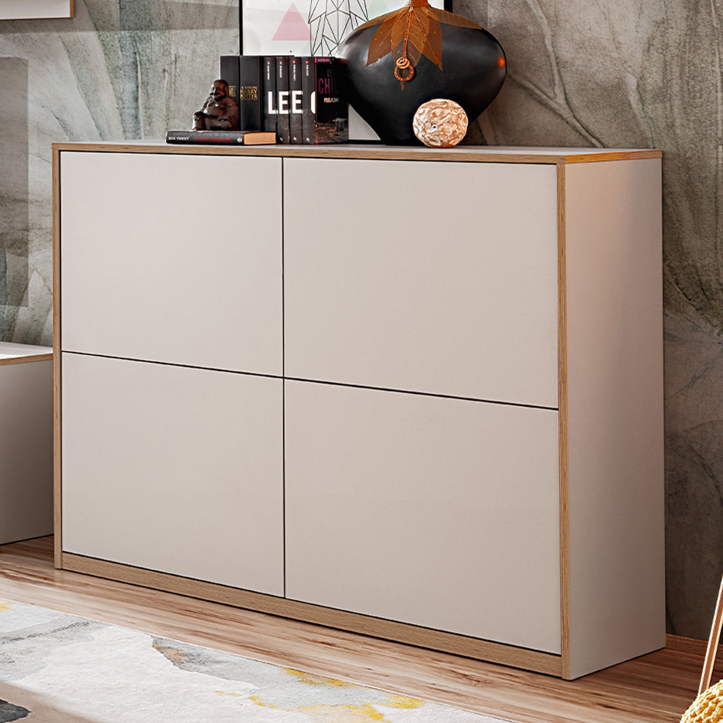 Create a modern and elegant atmosphere in your home with this modern sideboard designed for smart storage and clean aesthetics. With its geometric front and minimalist finish, this piece brings both style and functionality to your space. Behind the four soft-close doors, you’ll find generous compartments ideal for organizing everyday items, documents, books, or tableware.