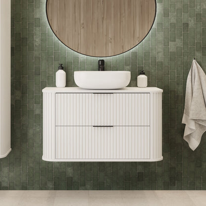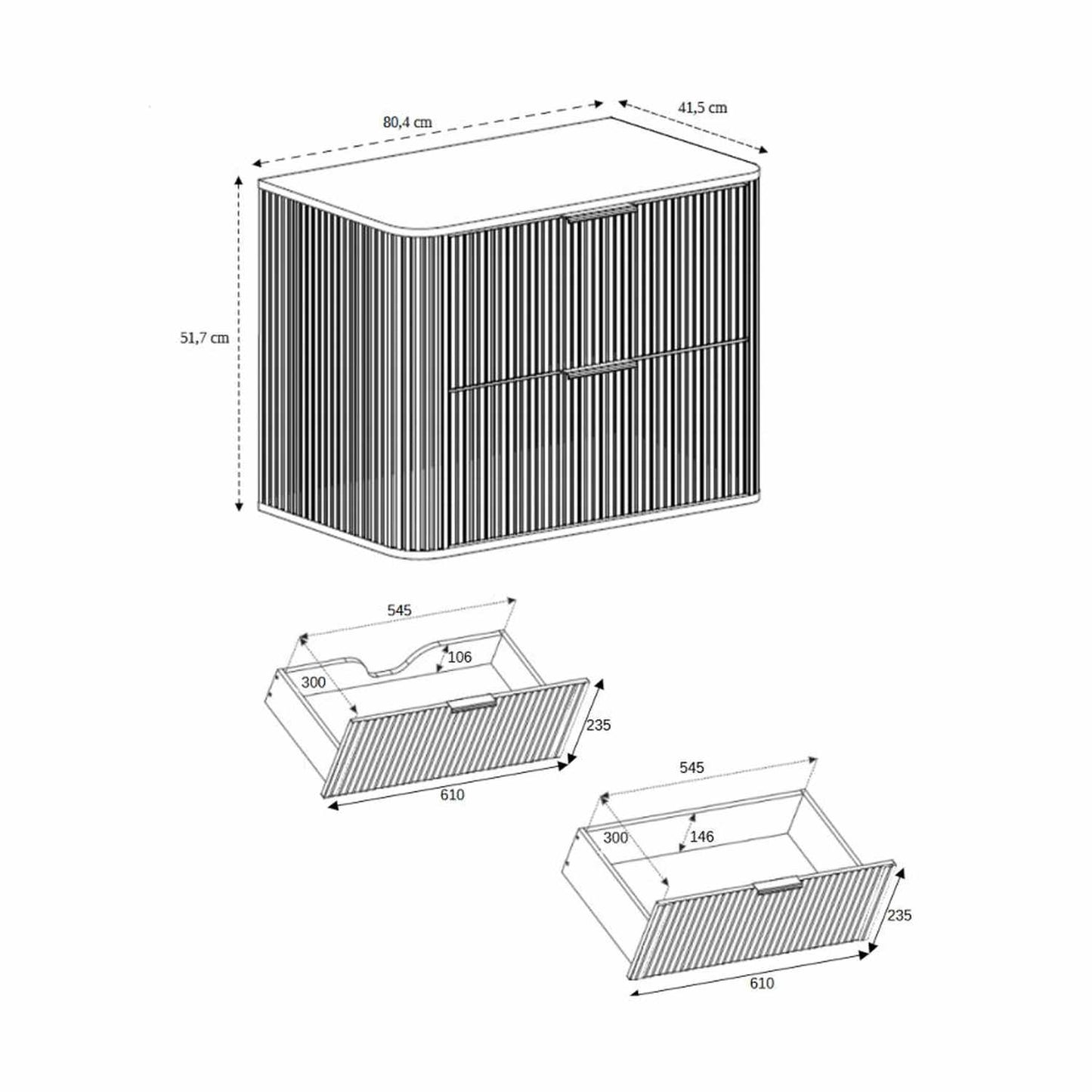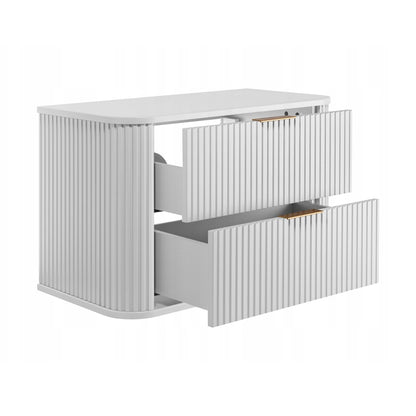 Transform your bathroom with the Elegance Glamour Style 2 Drawer Bathroom Wall Cabinet.. It's a 80cm wide cabinet with 2 spacious drawers designed with a curved finish and textured doors for a luxurious look. The included worktop completes the cabinet, providing a perfect blend of style and practicality and allows you to add a countertop basin. Upgrade your space with this elegant, functional solution that brings both glamour and smart storage to your bathroom.