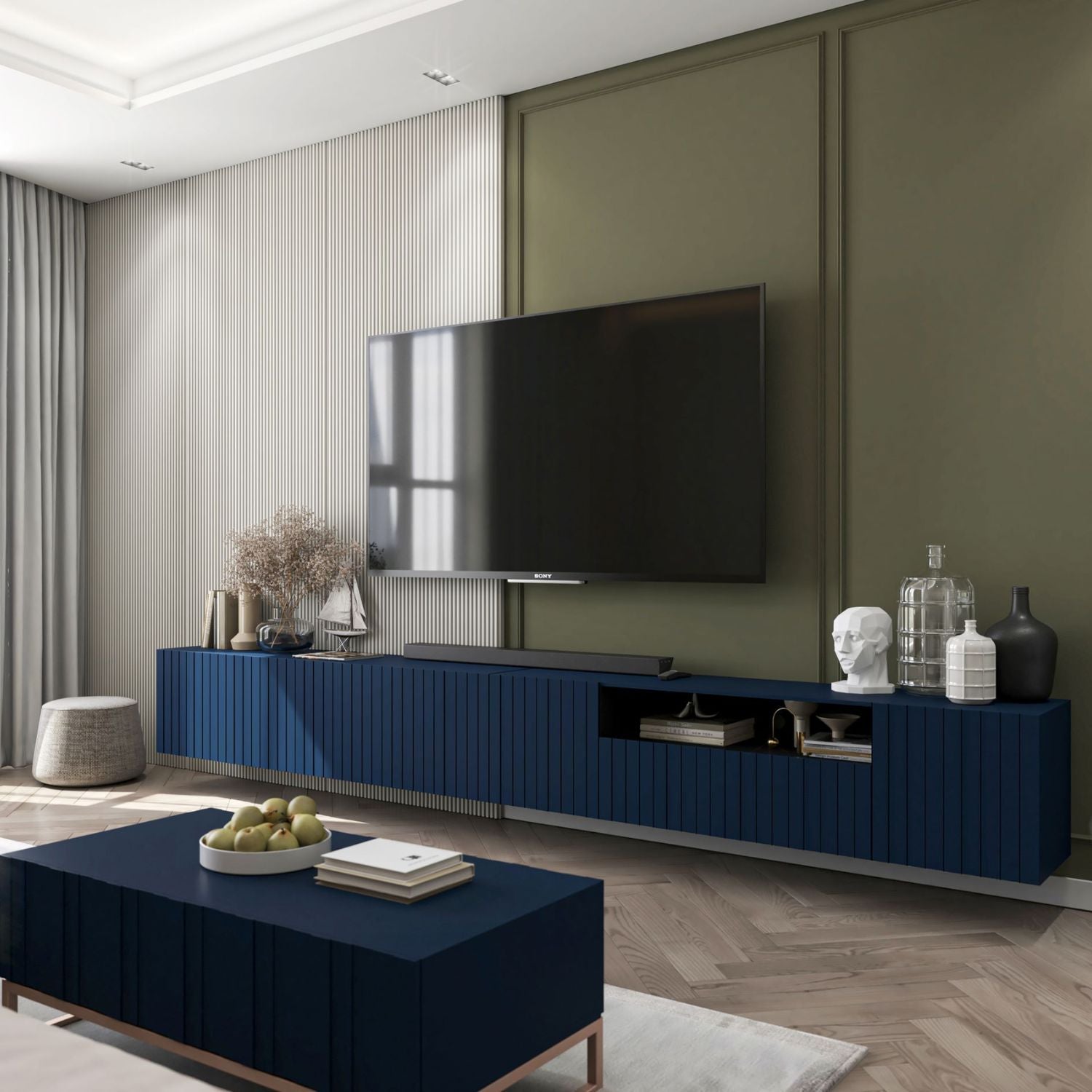 Elpis Glamour Wall-Mounted TV Cabinet with Storage Extra Long 4DK 300cm - Navy Matt