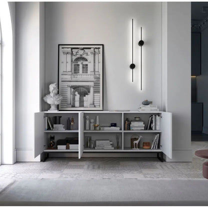 Bring elegance and functionality into your living room with the ELPIS Glamour TV Sideboard. Designed with a modern aesthetic and made from high-quality materials, this cabinet offers both sophisticated style and practical storage space. Its push-to-open doors eliminate the need for handles, creating a clean, minimalist look. Adjustable shelves allow for customized organization, meeting even the most demanding storage needs.