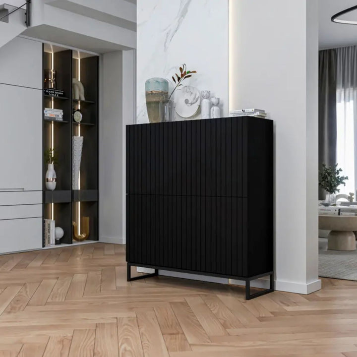 Add a touch of elegance and modern functionality to your home with the ELPIS Glamour TV Sideboard. This stylish cabinet is designed to enhance any living space with its sleek, handleless design and practical storage solutions. The push-to-open mechanism offers a clean and minimalist finish, while the adjustable shelves allow for flexible interior organisation to suit your needs.