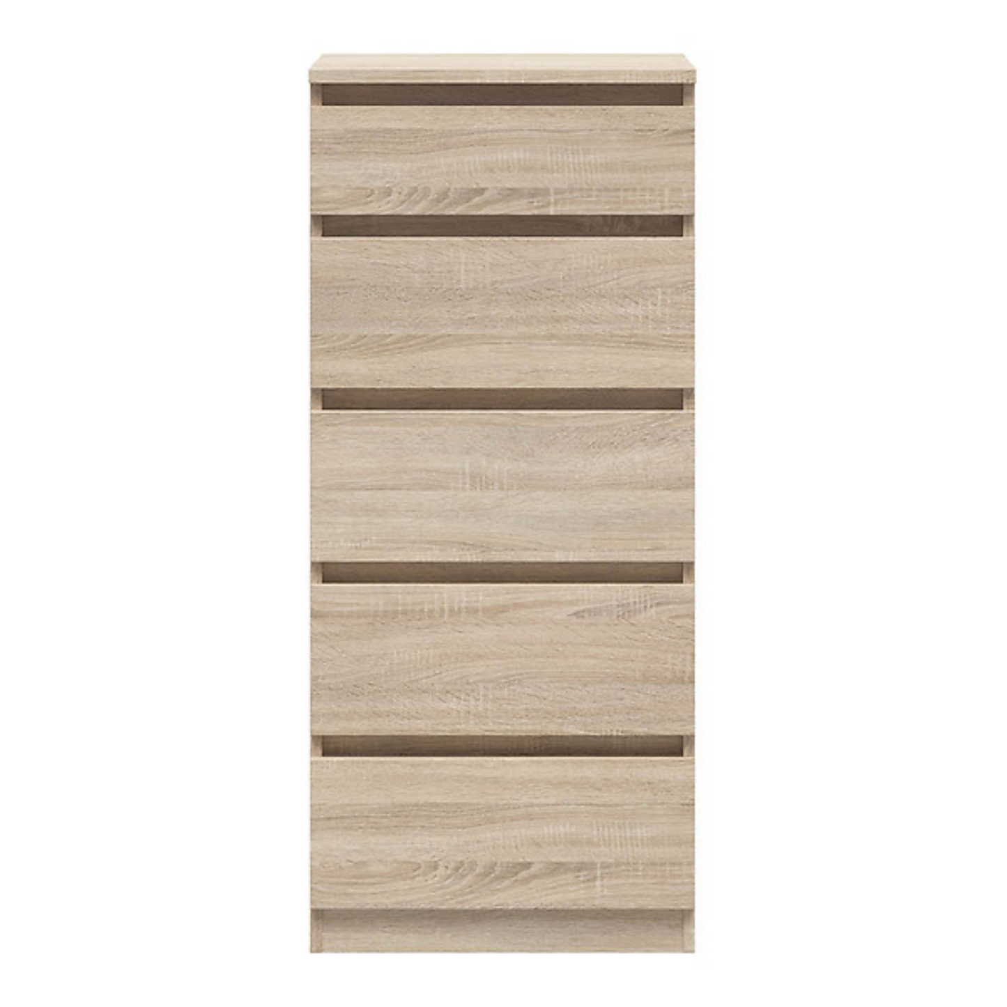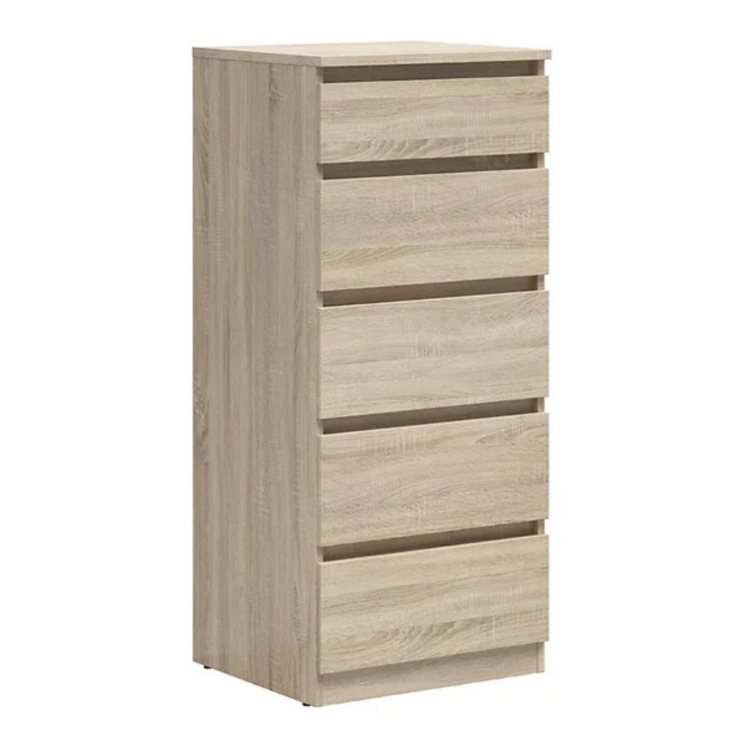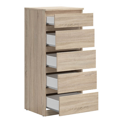 Exter Chest of Drawers is a stylish and space-saving solution for modern interiors. Featuring five functional drawers and a sleek handleless design, it offers ample storage while maintaining a clean, minimalist aesthetic. Its compact form makes it ideal for smaller spaces, ensuring practicality without compromising on elegance. As part of the Exter Collection, it blends seamlessly with other furniture pieces, making it a perfect addition to contemporary homes.