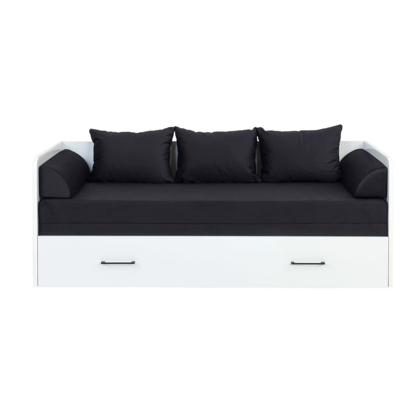 Exter Folding Bed with Container Mattress and Pillows combines modern design with practical functionality. It features a spacious sleeping area that extends for added comfort, a built-in bedding storage compartment for convenience, and a high-quality H3 mattress for optimal support. The complete set includes plush cushions, making it a perfect choice for stylish and space-saving interiors. Ideal for guest rooms, small apartments, or daybed setups, this piece seamlessly blends aesthetics with practicality.