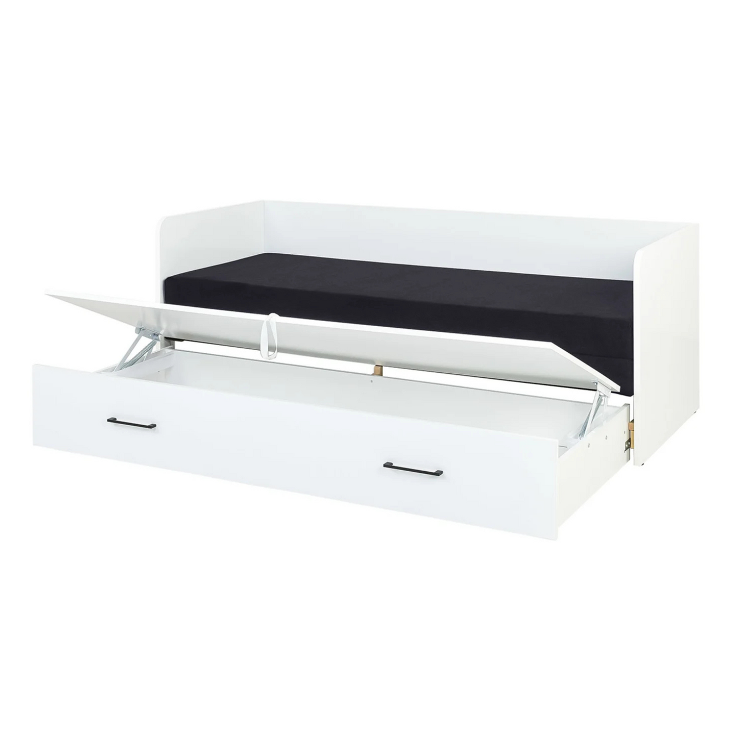 Exter Folding Bed with Container Mattress and Pillows - White Matt / Black