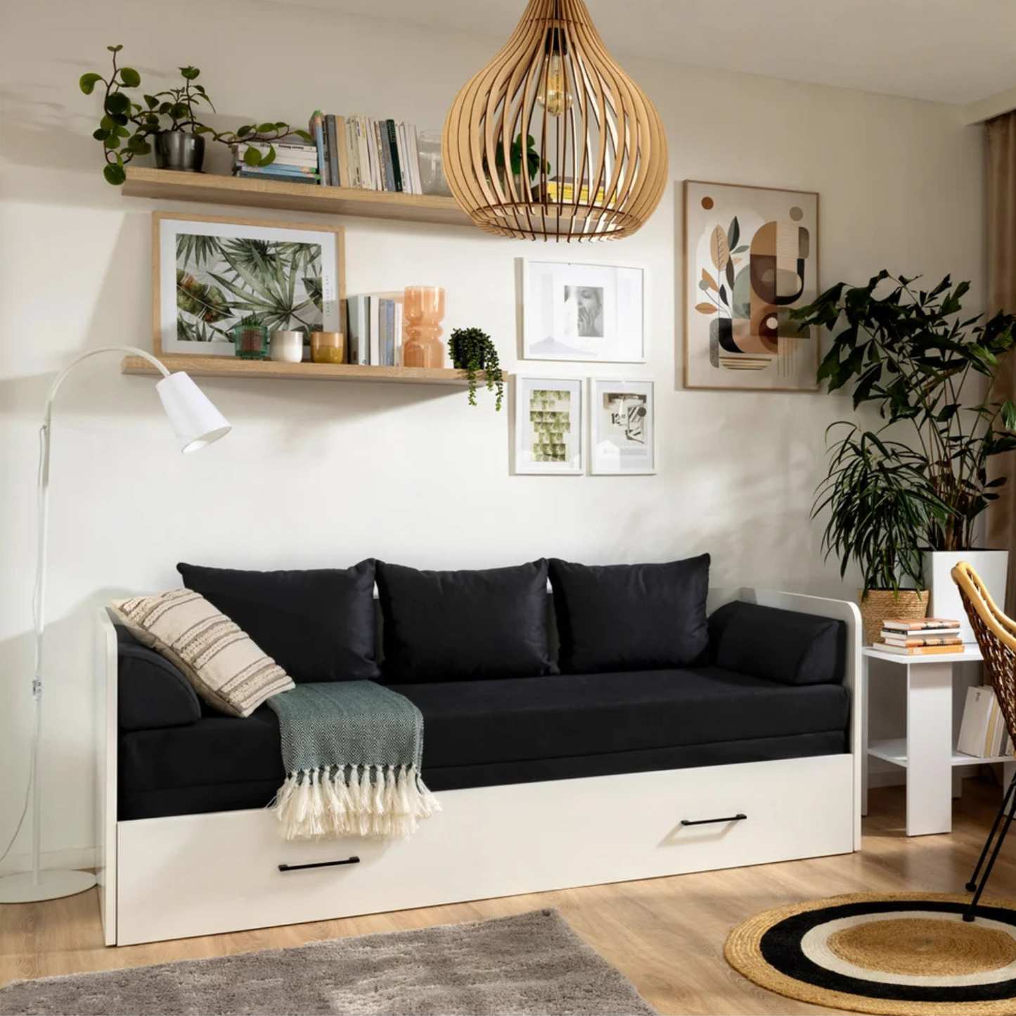 • Complete Set Included – Comes with a fold-out mattress, 3 soft pillows, and 2 practical headrests in matching fabric.