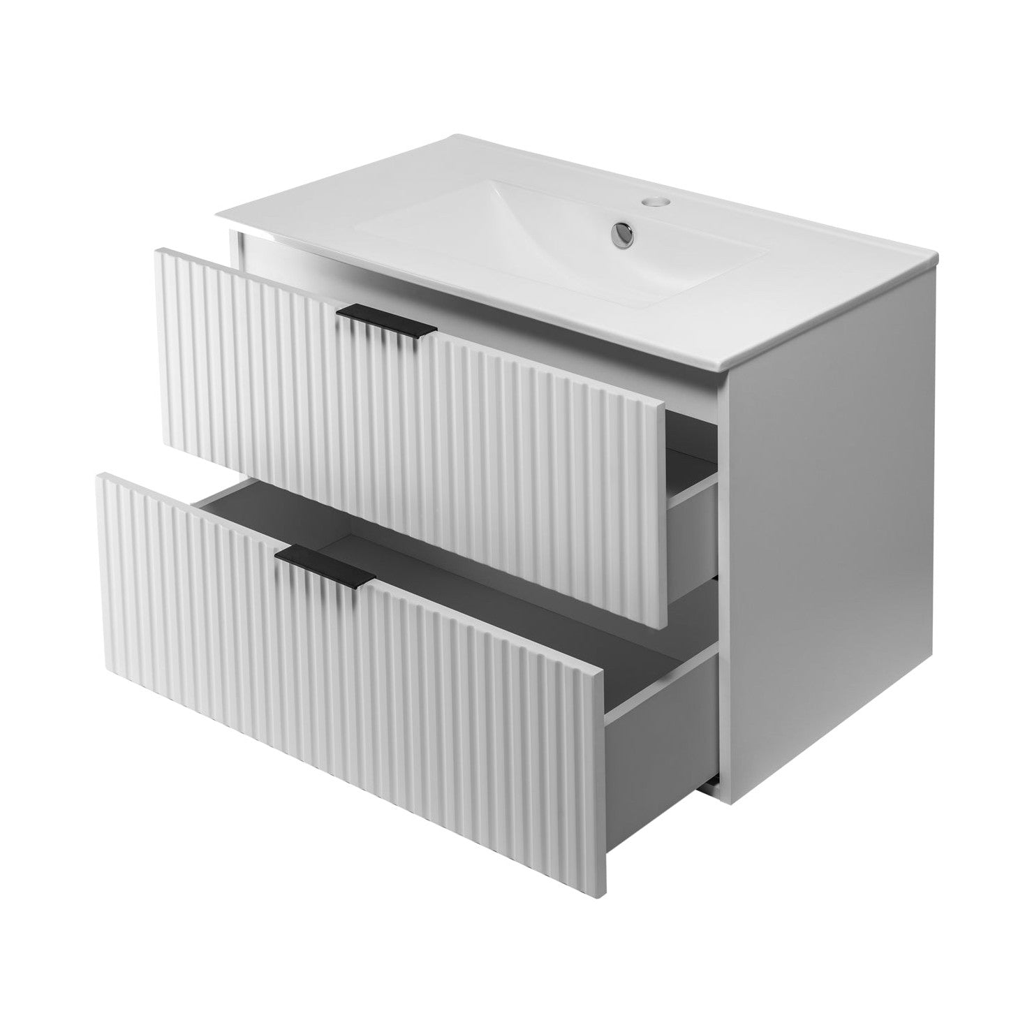 Featuring trendy ribbed fronts crafted from high-quality MDF board, this cabinet offers a contemporary touch to any space. The laminated board body ensures exceptional durability and resistance to moisture, making it perfect for bathroom conditions.