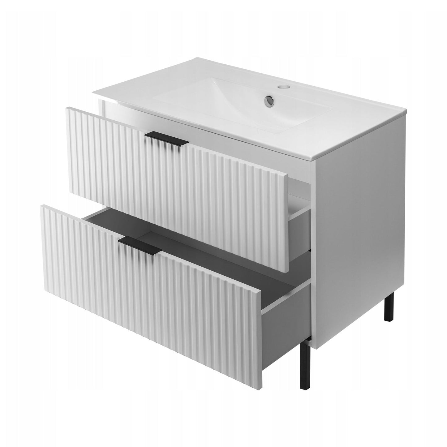 Designed in a modern and stylish manner, this collection features trendy ribbed fronts made from high-quality MDF board. The laminated board body ensures durability and resistance to bathroom conditions. This vanity cabinet is equipped with a ceramic, rectangular bathroom sink offering both beauty and practicality.