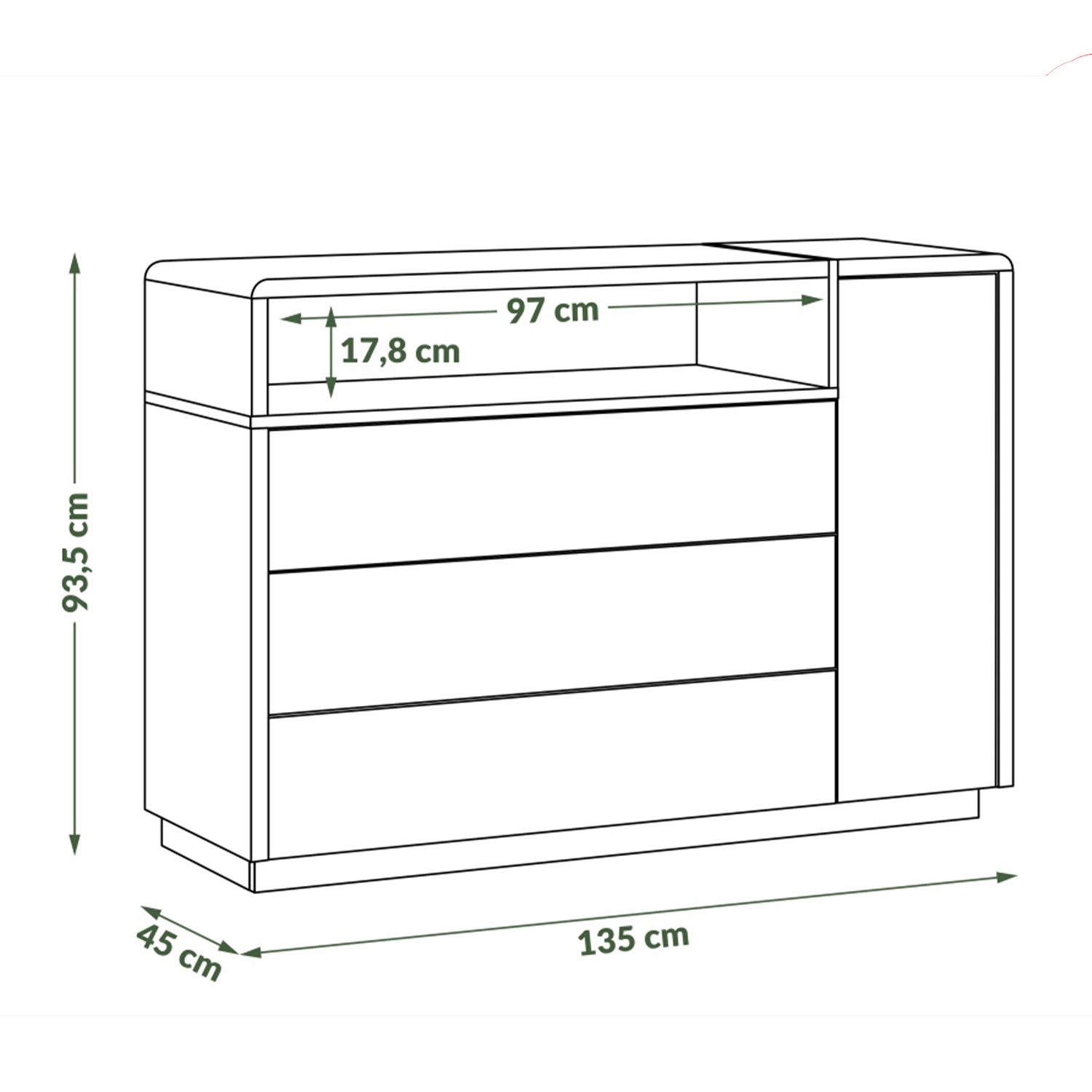 • Width: 135.0cm