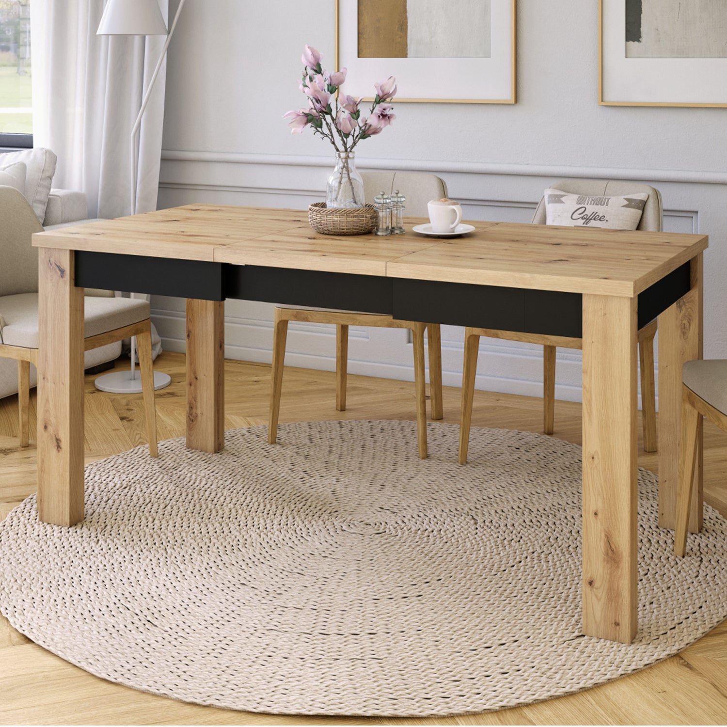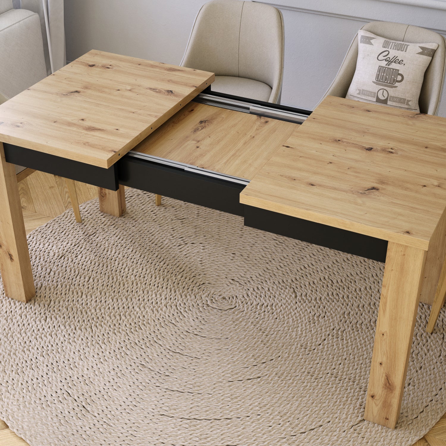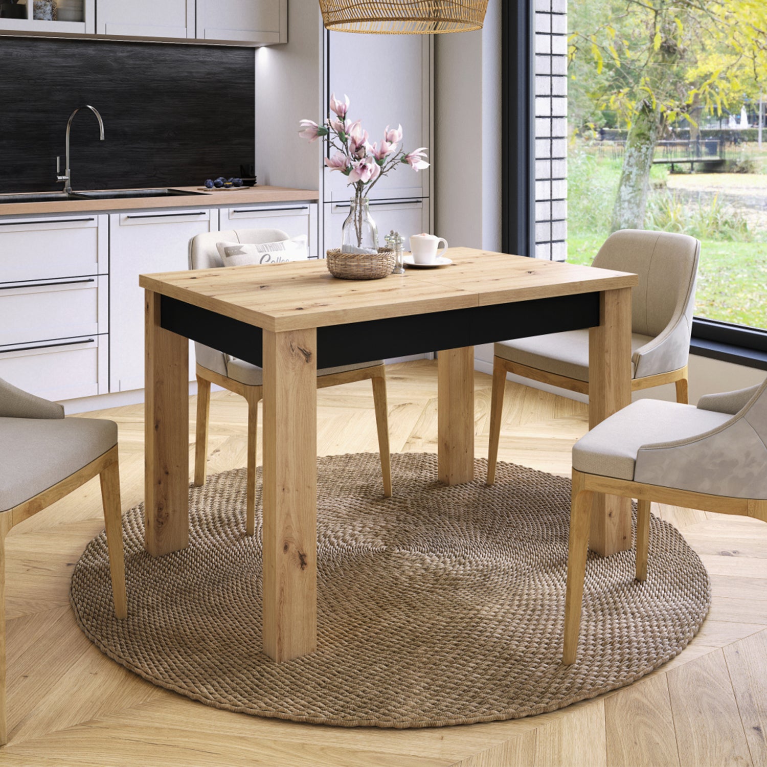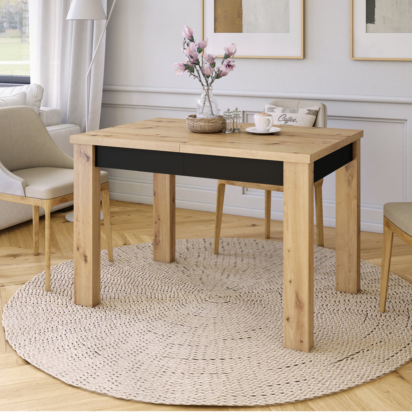 Fonte 110 Modern Extending Dining Table - Artisan Oak / Black Matt