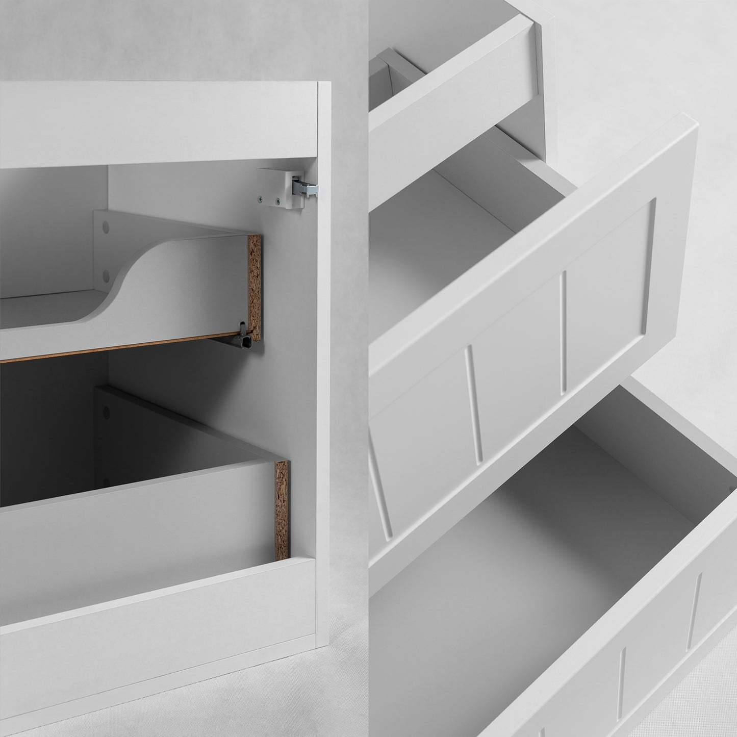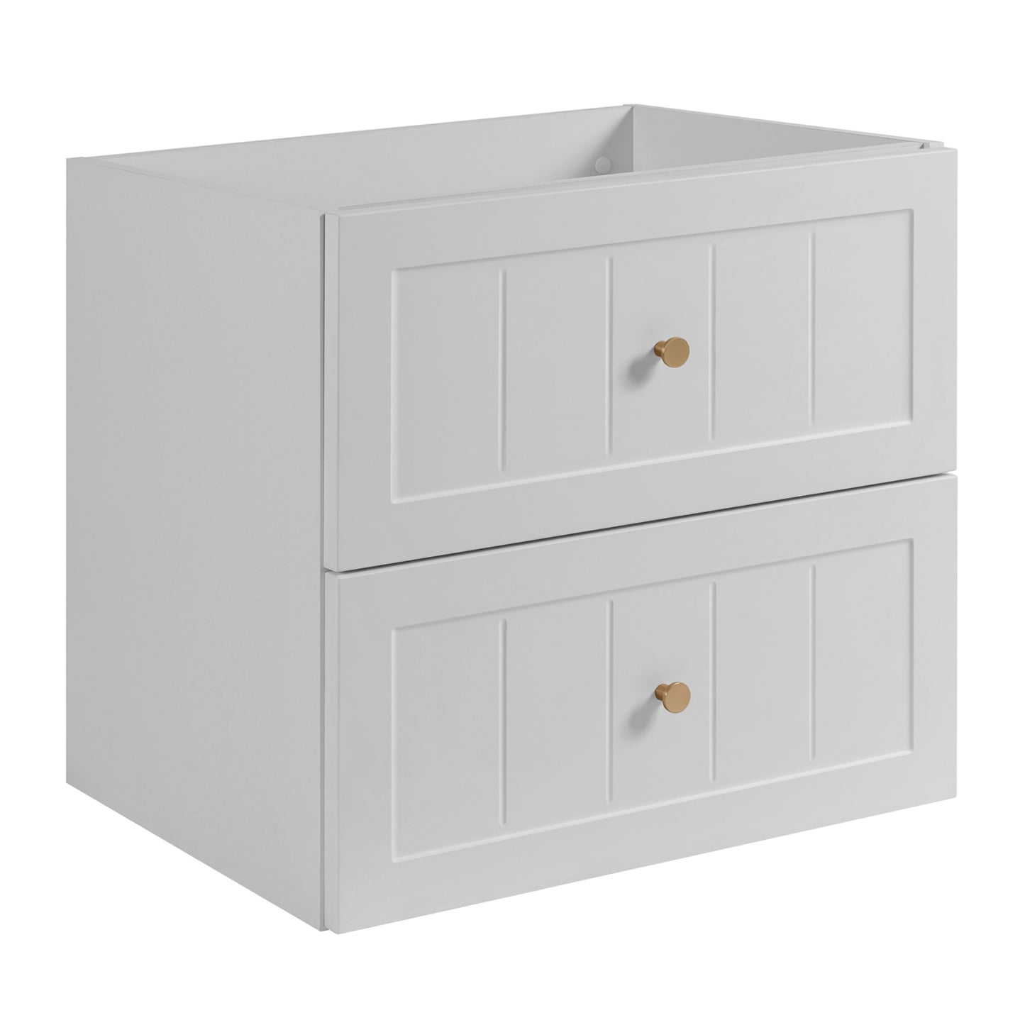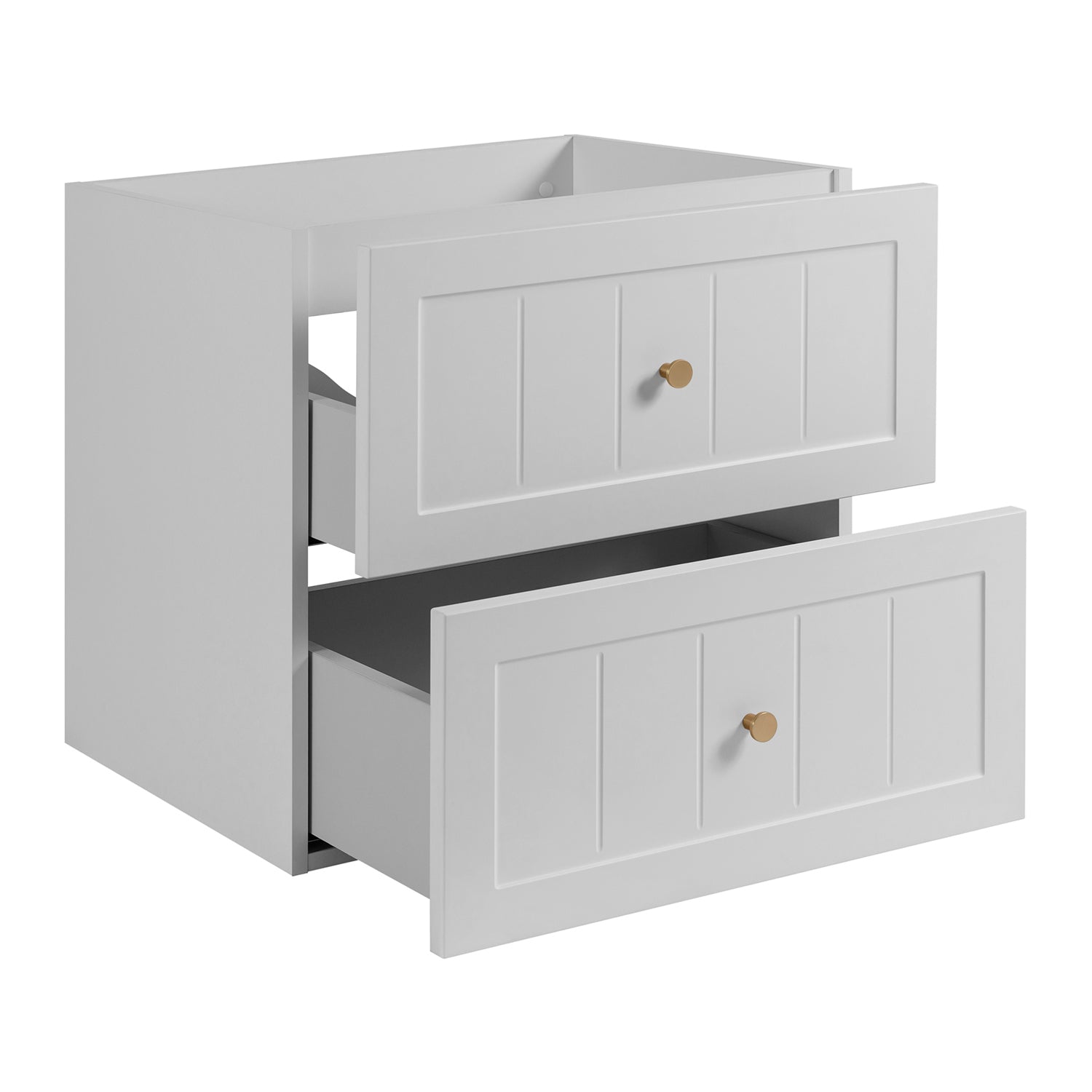 Elevate your bathroom with the minimalist elegance of the Gusto Scandi Style 2 Drawer Wall Cabinet Vanity Unit with Worktop. This 60cm vanity unit is designed with clean vertical grooves and soft-close drawers that combine modern style with everyday functionality. Perfect for compact or contemporary interiors, it provides practical storage space while keeping your essentials within easy reach. The included set of 3 interchangeable handles in gold, silver, and black allows you to customise the look to suit your bathroom's vibe.