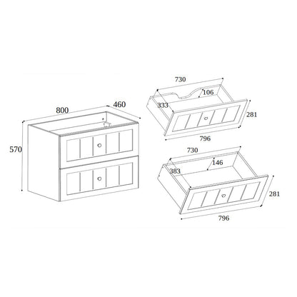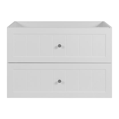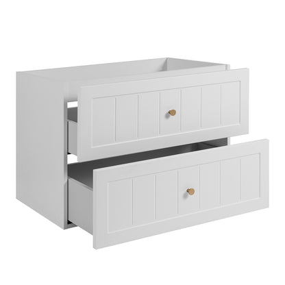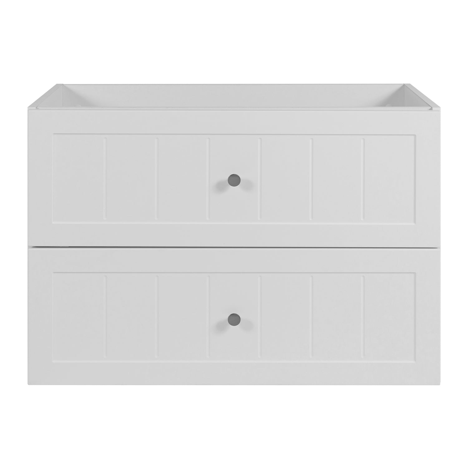 Elevate your bathroom with the minimalist elegance of the Gusto Scandi Style 2 Drawer Wall Cabinet Vanity Unit with Worktop. This 80cm vanity unit is designed with clean vertical grooves and soft-close drawers that combine modern style with everyday functionality. Perfect for compact or contemporary interiors, it provides practical storage space while keeping your essentials within easy reach. The included set of 3 interchangeable handles in gold, silver, and black allows you to customise the look to suit your bathroom's vibe.