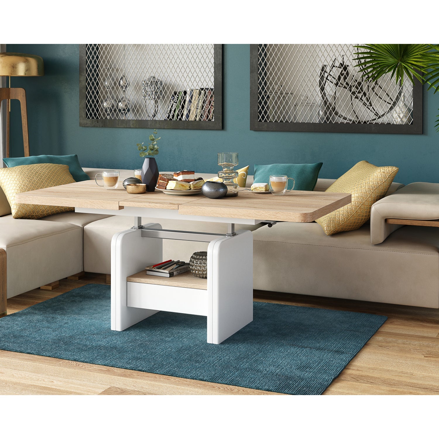 Lotta 2 in 1 Extending Coffee / Dining Table 120-180cm - Sonoma Oak / White