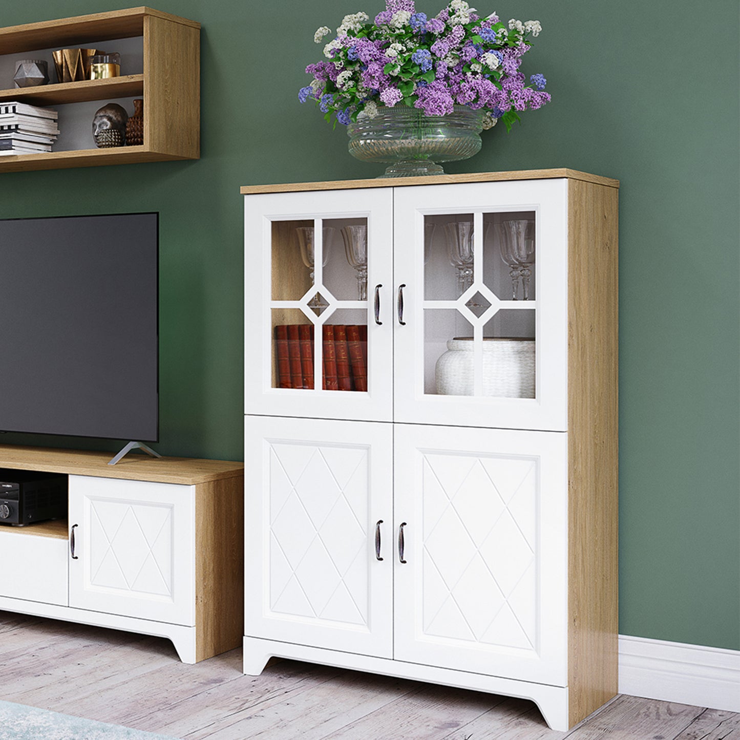 Showcase decorative items or fine china with the Provenza display unit. Its unique blend of stone oak and white matt adds a fresh, rustic feel to any room.