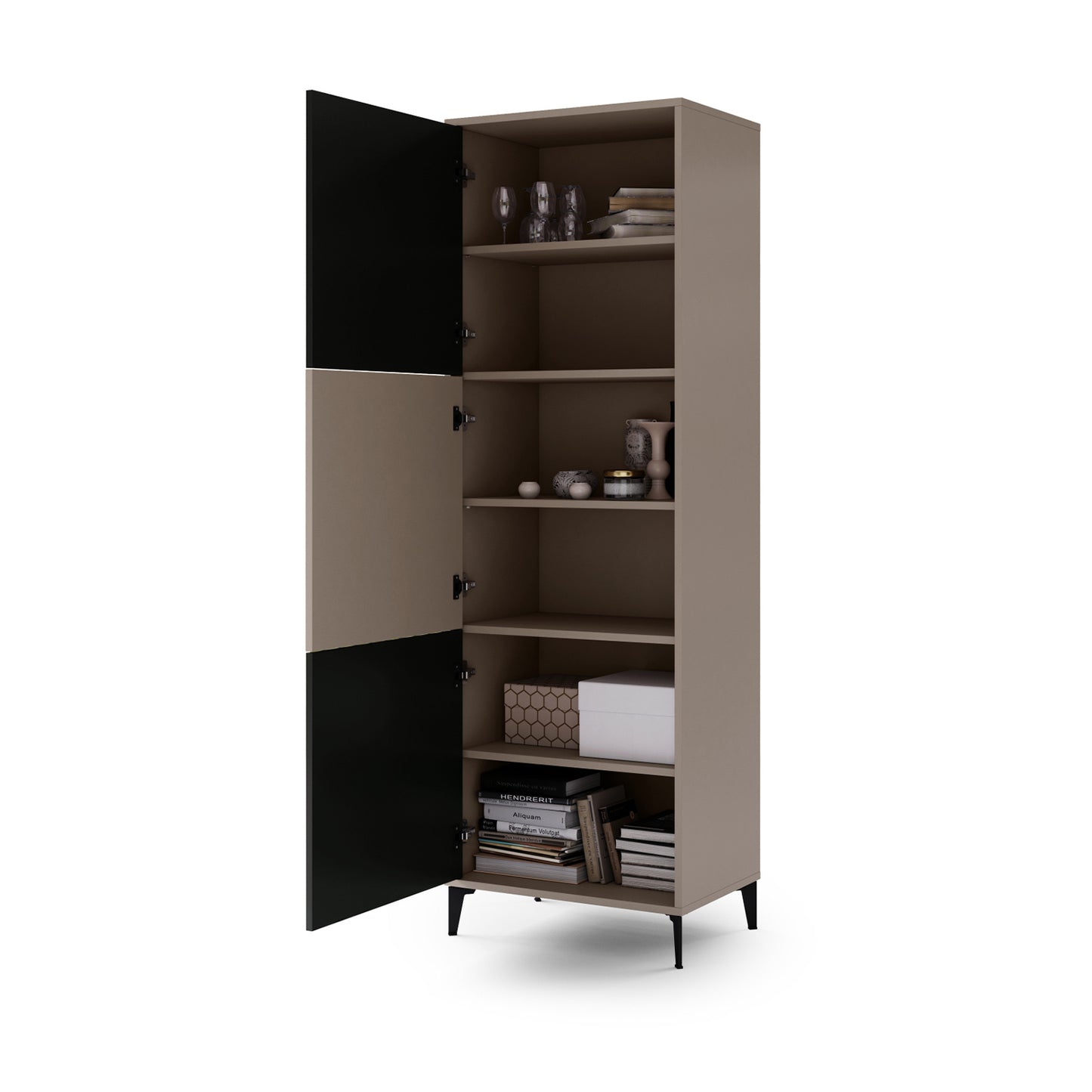 Available in a sophisticated taupe and black colour scheme, this cabinet not only serves as a functional piece but also enhances your interior décor. The tabletop features a thickness of 18mm, offering a solid surface for decorative items or additional storage.