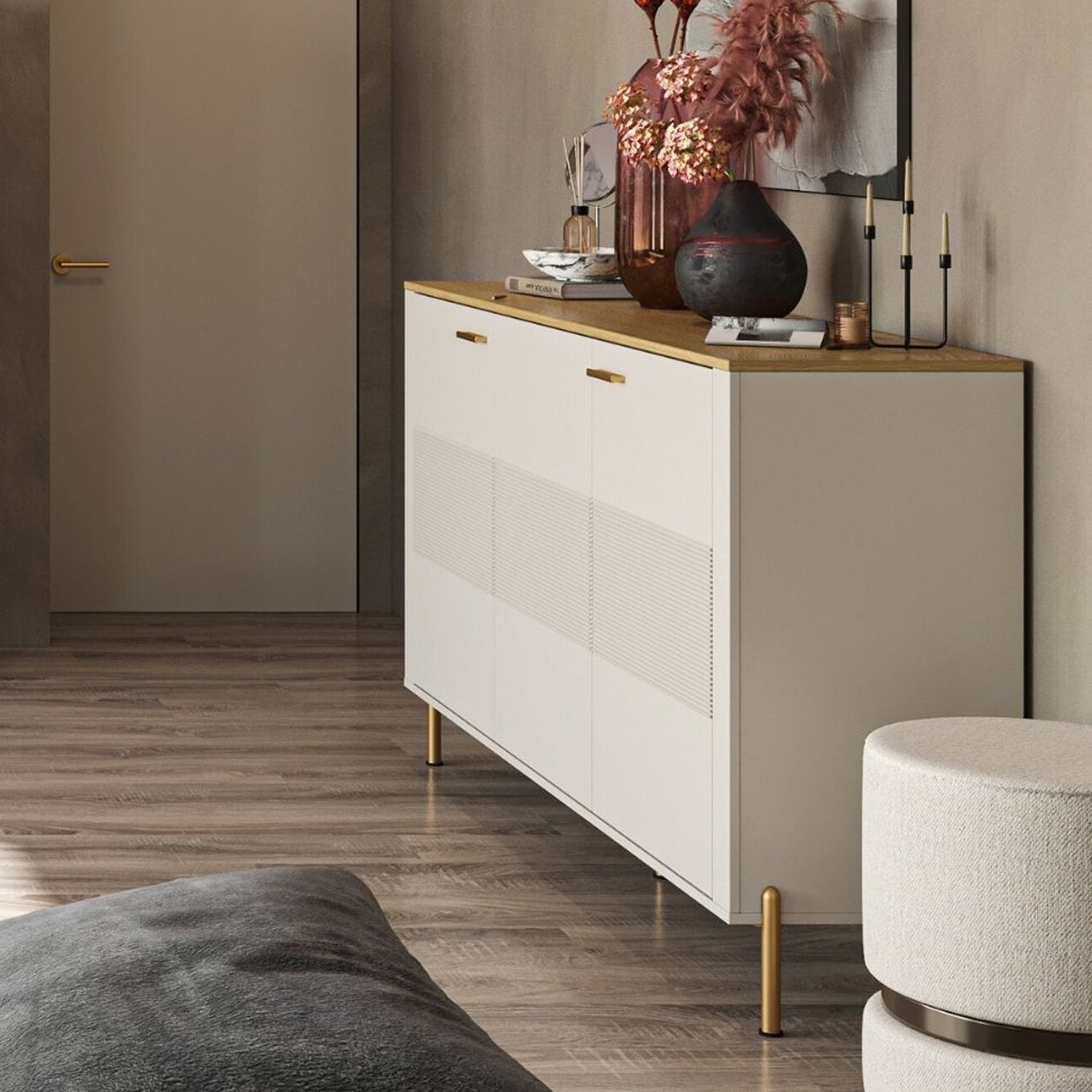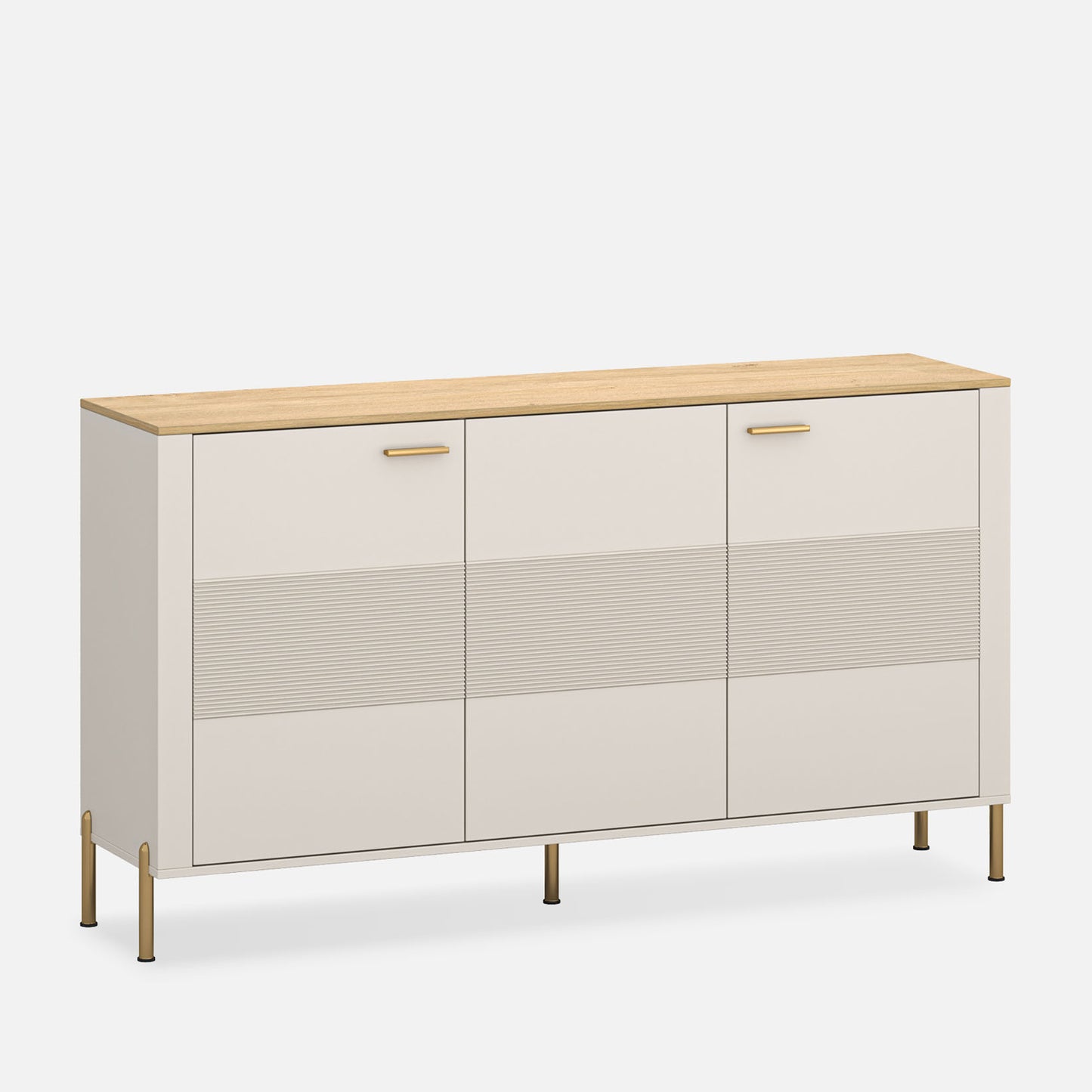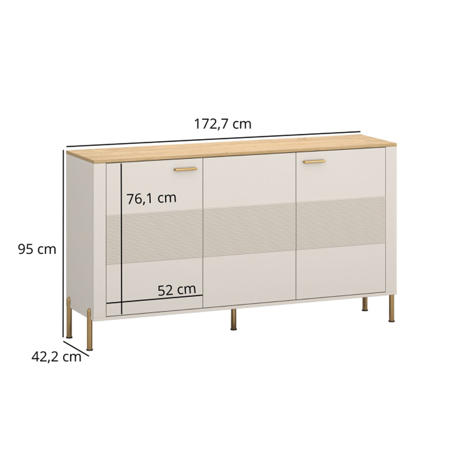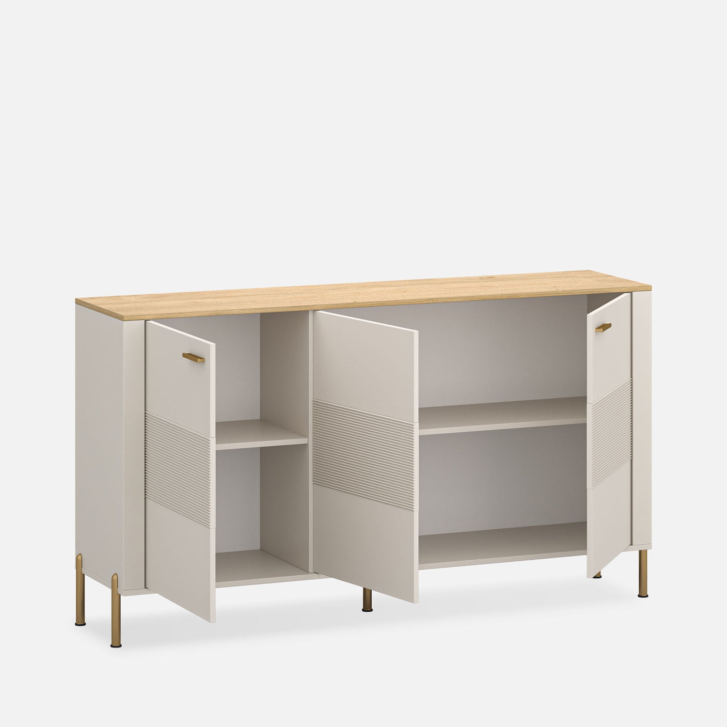 Add sophistication to your space with the Ruben 3 Door Sideboard. Finished in warm cashmere and stone oak, this sideboard offers generous storage with three doors, perfect for stashing dining essentials, linens, or media items. With a versatile design that suits both modern and traditional interiors, it's a chic, functional addition to any room.
