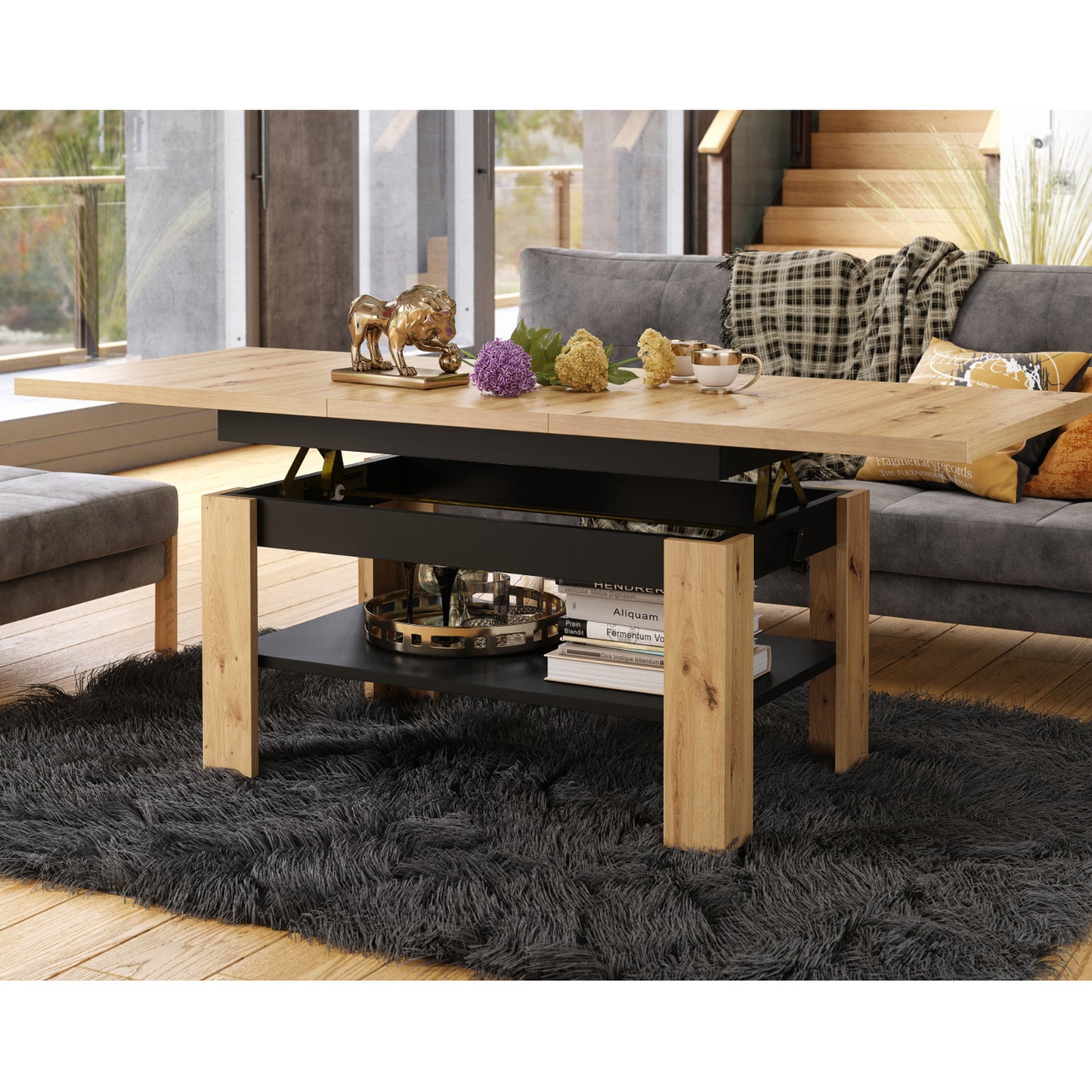Runa 2 in 1 Extending Coffee / Dining Table 130-170cm - Artisan Oak / Black
