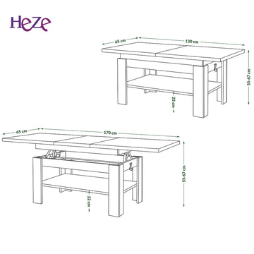 An excellent proposal for those who value functionality. Depending on your needs, this model can serve as a coffee table in the living room, a dining table for comfortable meals, or a place to celebrate family occasions. High-quality synchronous guides ensure smooth and convenient extension of the tabletop, while the lifting mechanism allows for easy height adjustment from 55cm to 67cm. The icing on the cake is a spacious shelf at the bottom, ensuring that all necessary items are always within reach. Constructed from high-quality materials, this coffee table is built to last. Its sturdy frame and durable finish make it resistant to everyday wear and tear, ensuring long-lasting performance. The Rio coffee table is designed to withstand the demands of daily use, making it an ideal investment for your home.